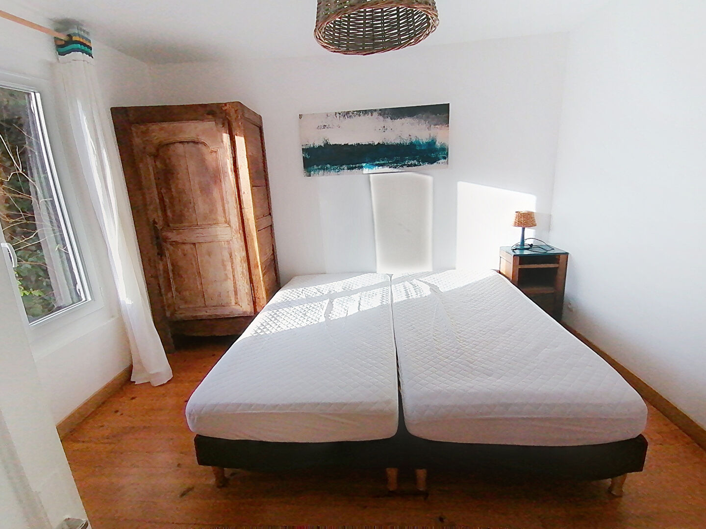 Située dans une petite copropriété, cette maison de vacances en parfait état, proche mer, dans environnement calme, se compose d'une chambre, d'un séjour, d'une cuisine indépendante avec espace repas, et d'une salle de douche avec wc.