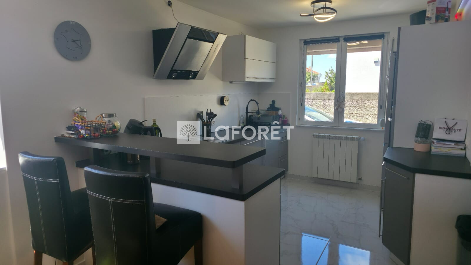 -Cuisine équipée ouverte sur un double séjour lumineux avec espace salle à manger accés terrasse et jardin