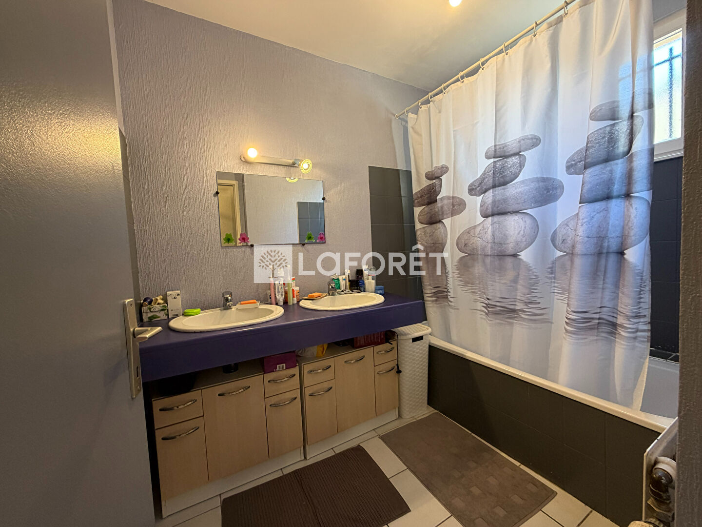 À l'étage, trois chambres confortables, une salle de bain avec double vasque et baignoire, ainsi qu'un WC indépendant
