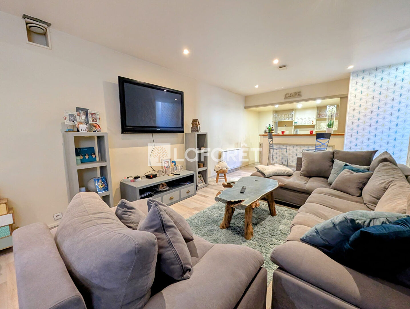Le rez-de-jardin est aménagé, il comprend un coin bureau, une vaste pièce pouvant servir de salon, salle de jeux ou chambre, coin bar, local technique et porte donnant sur la cour.