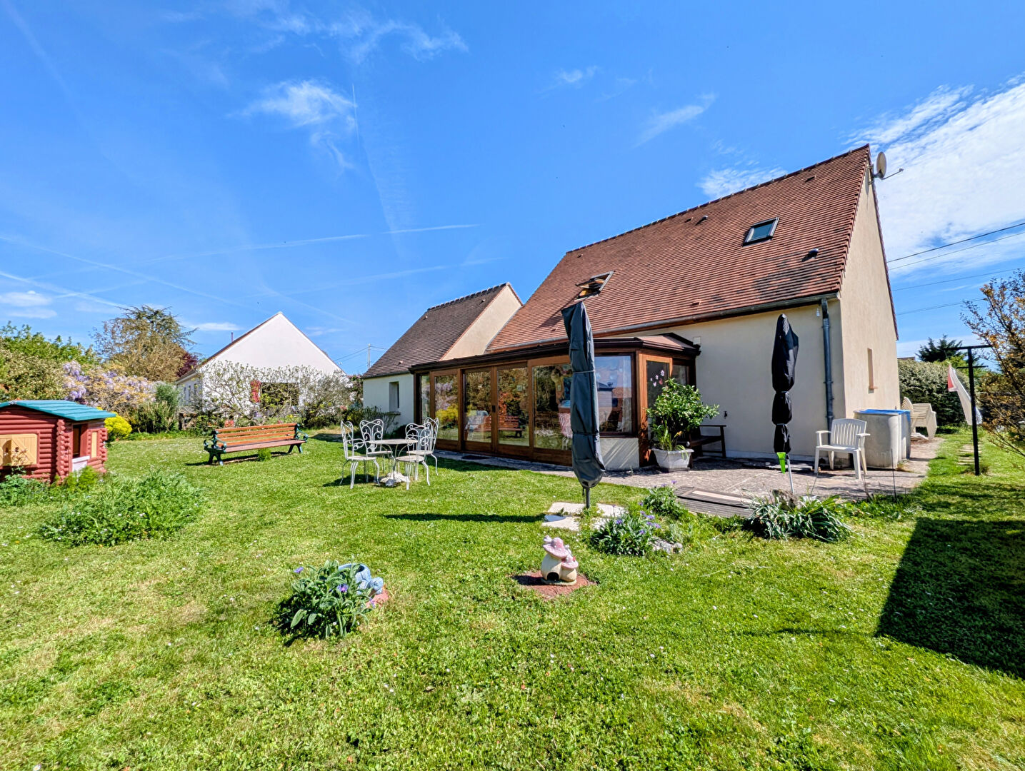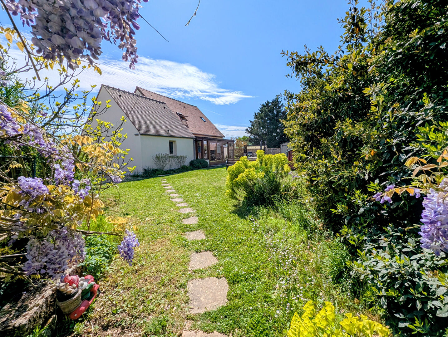 Le tout sur un jardin entretenu d'environ 952 m² arboré et sans vis-à-vis.