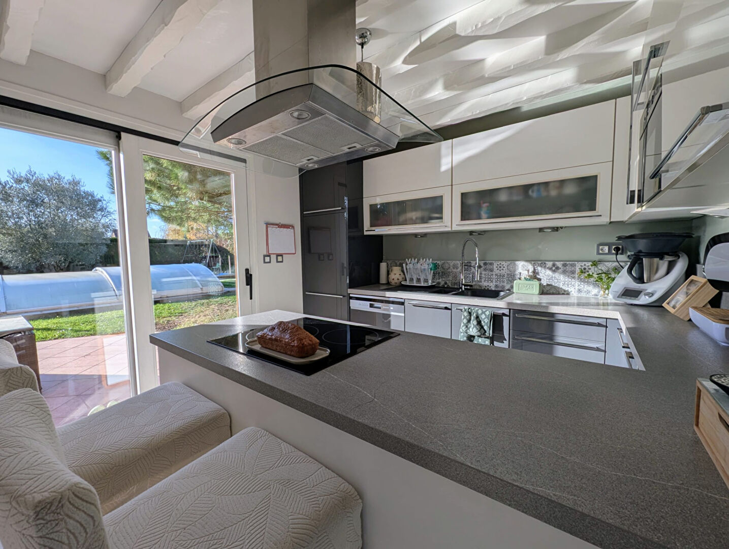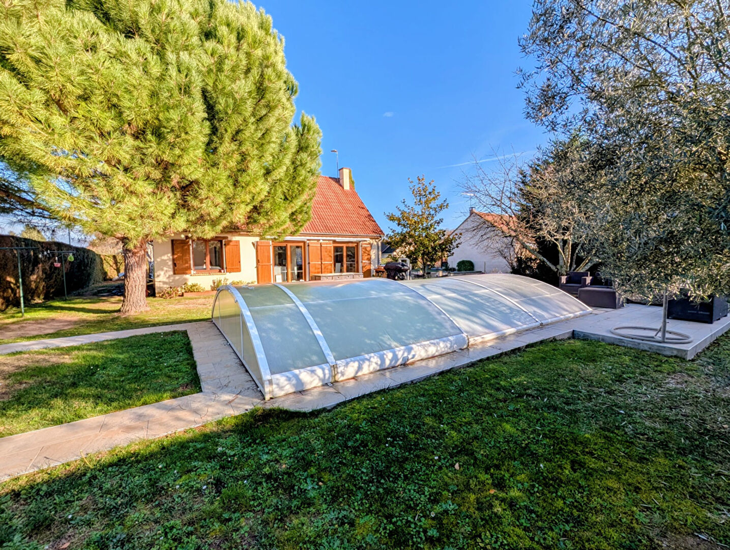 Le tout sur un jardin clos d'environ 1 037 m², arboré, comprenant deux terrasses, une piscine et un chalet de jardin.