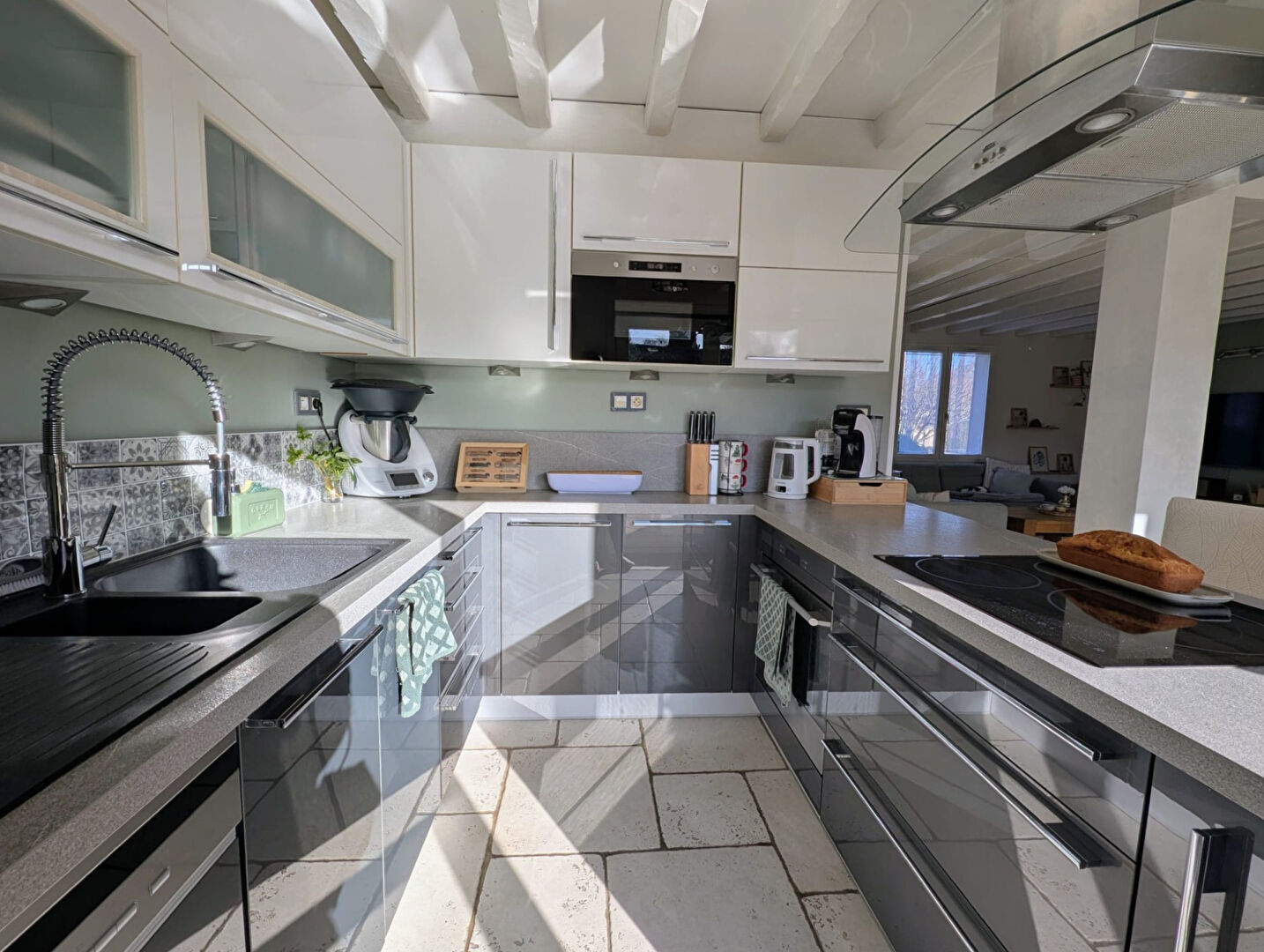 Dans un secteur calme à 3 min de Milly-la-Forêt, une maison rénovée, non-mitoyenne, avec piscine chauffée sur un sous-sol total composée comme suit :