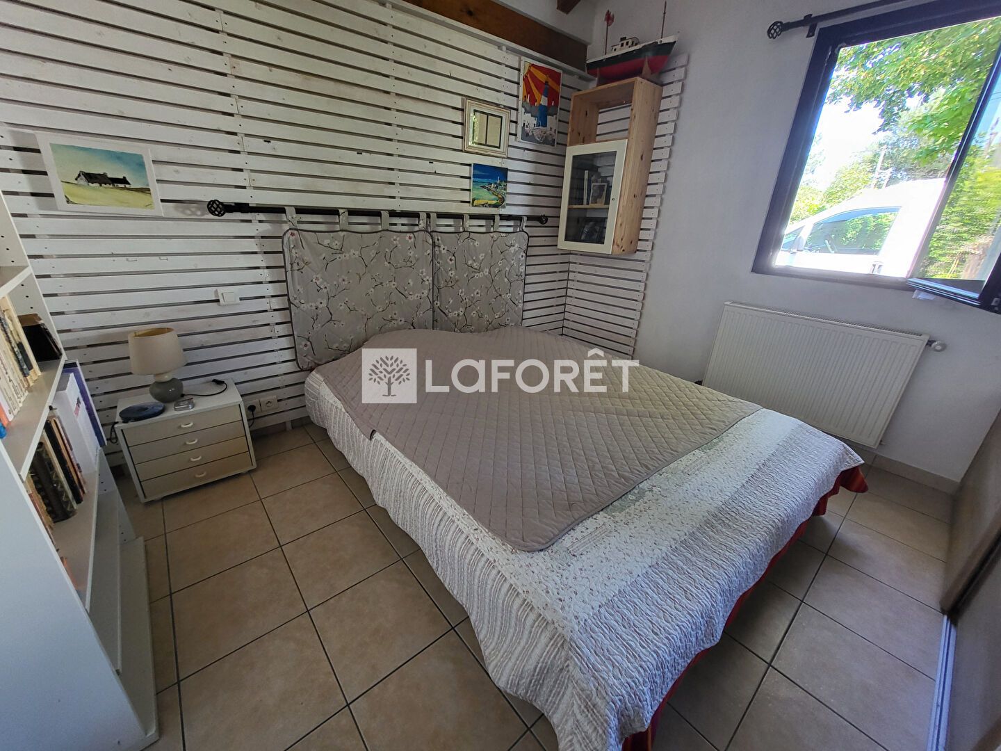 Elle se compose d'un vaste séjour lumineux de 55 m², agrémenté d'un plafond cathédrale, créant une atmosphère à la fois chaleureuse et spacieuse. La maison dispose de trois chambres, d'une cuisine indépendante aménagée et équipée, d'une salle d'eau moderne et d'un grand cellier pratique.