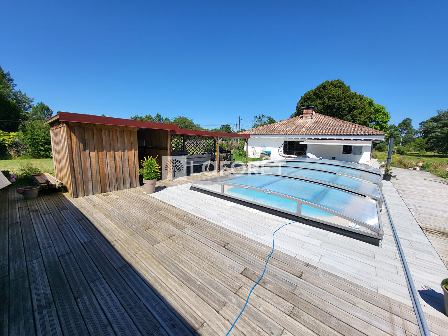 Le tout est situé sur un magnifique airial de 5 547 m², entièrement clos, offrant une belle intimité. Vous y trouverez une grande piscine de 8 x 4 mètres avec une spacieuse terrasse idéale pour les moments de détente, ainsi que deux dépendances et un authentique four à pain, parfait pour profiter de l'art de vivre à la landaise.