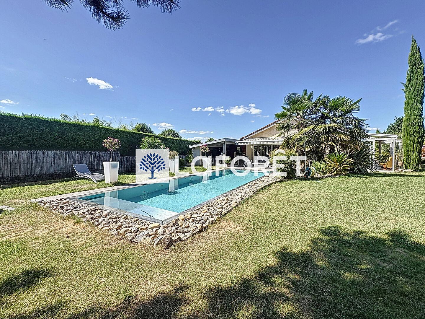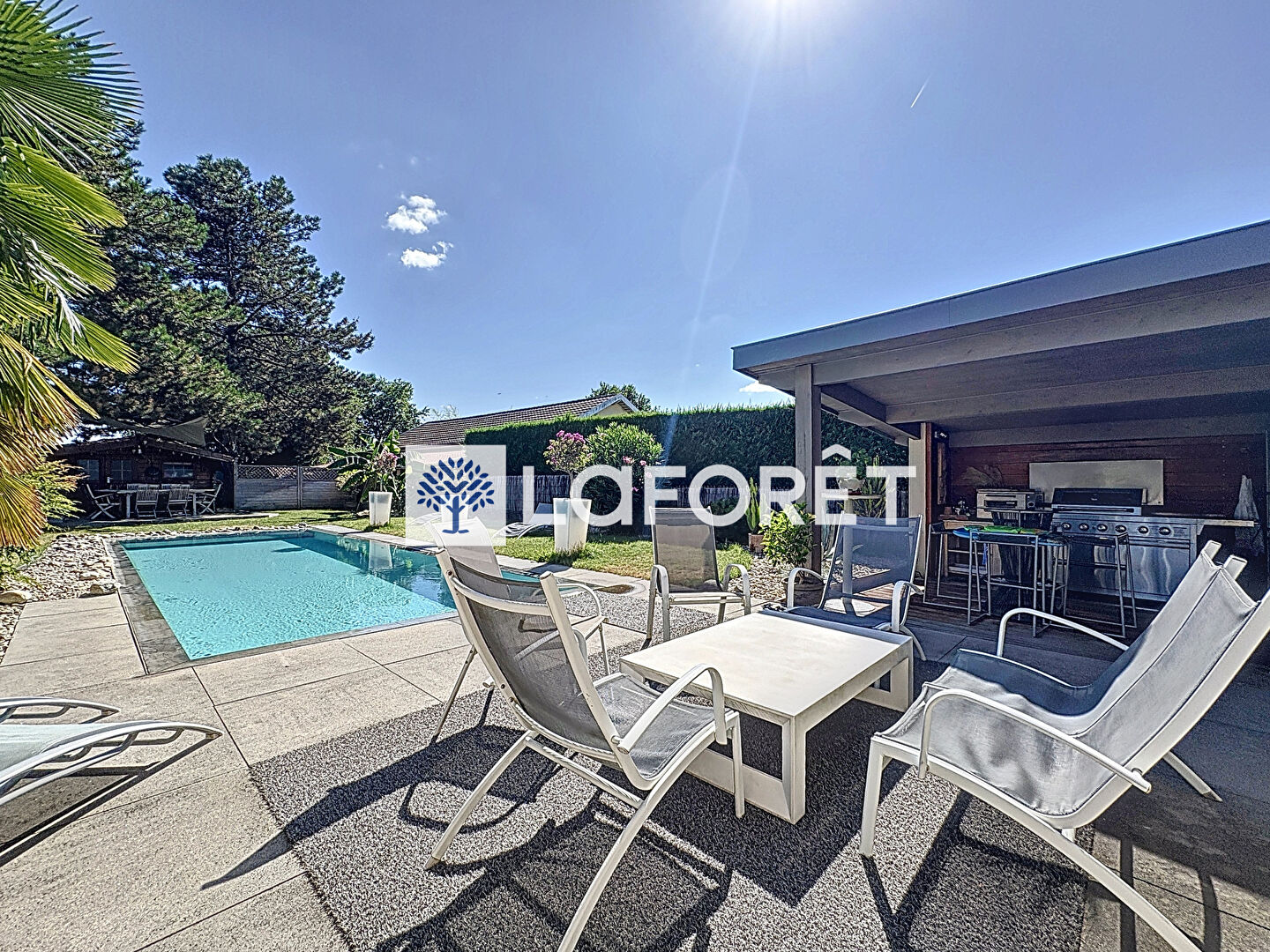 Et le vrai atout de ce bien : une magnifique piscine à débordement de 10,34 x 3,60 m, avec margelles en pierre de Savoie, système de régulation automatique du chlore et du pH, et remplissage automatique. Un véritable luxe au quotidien !