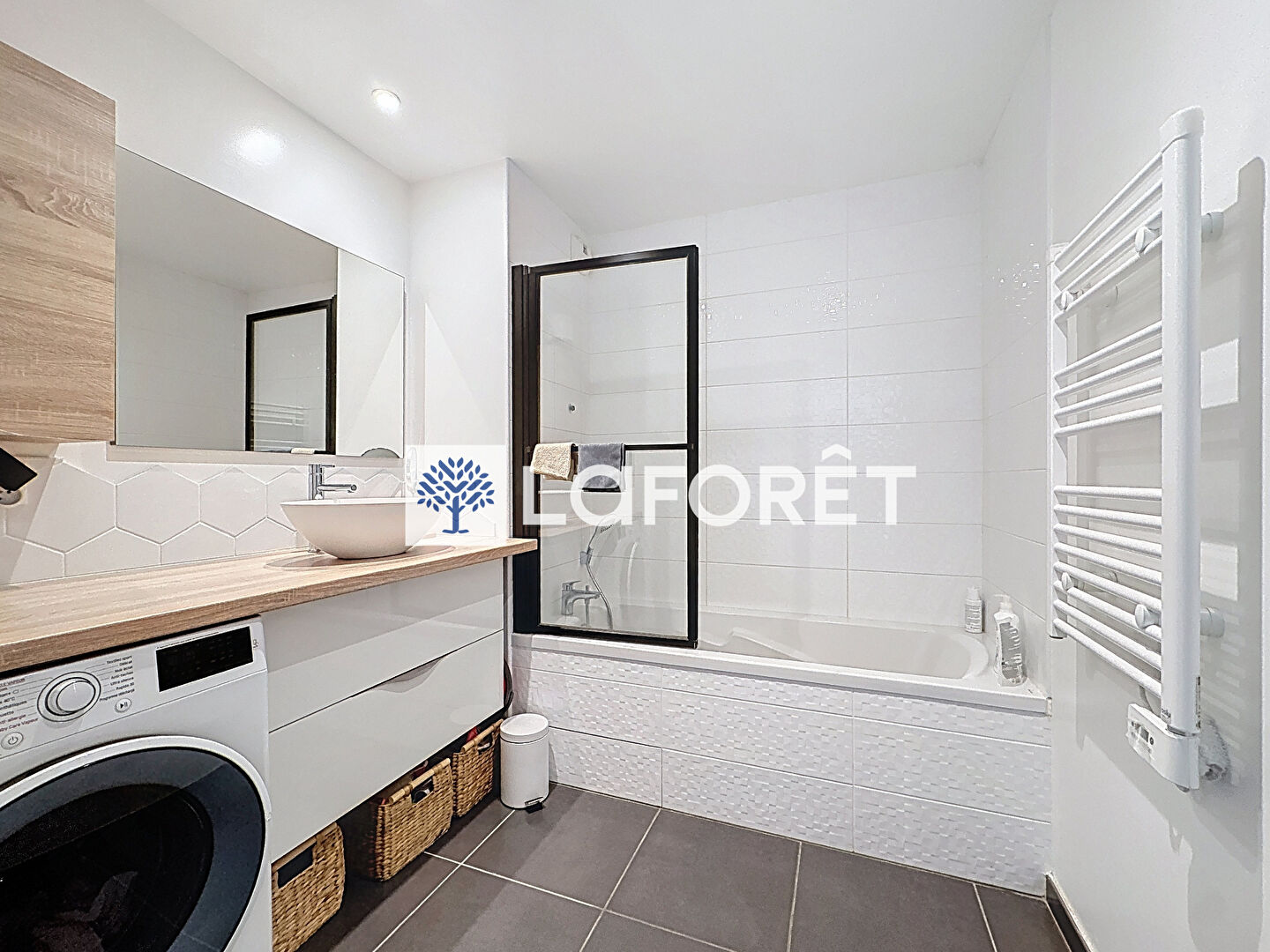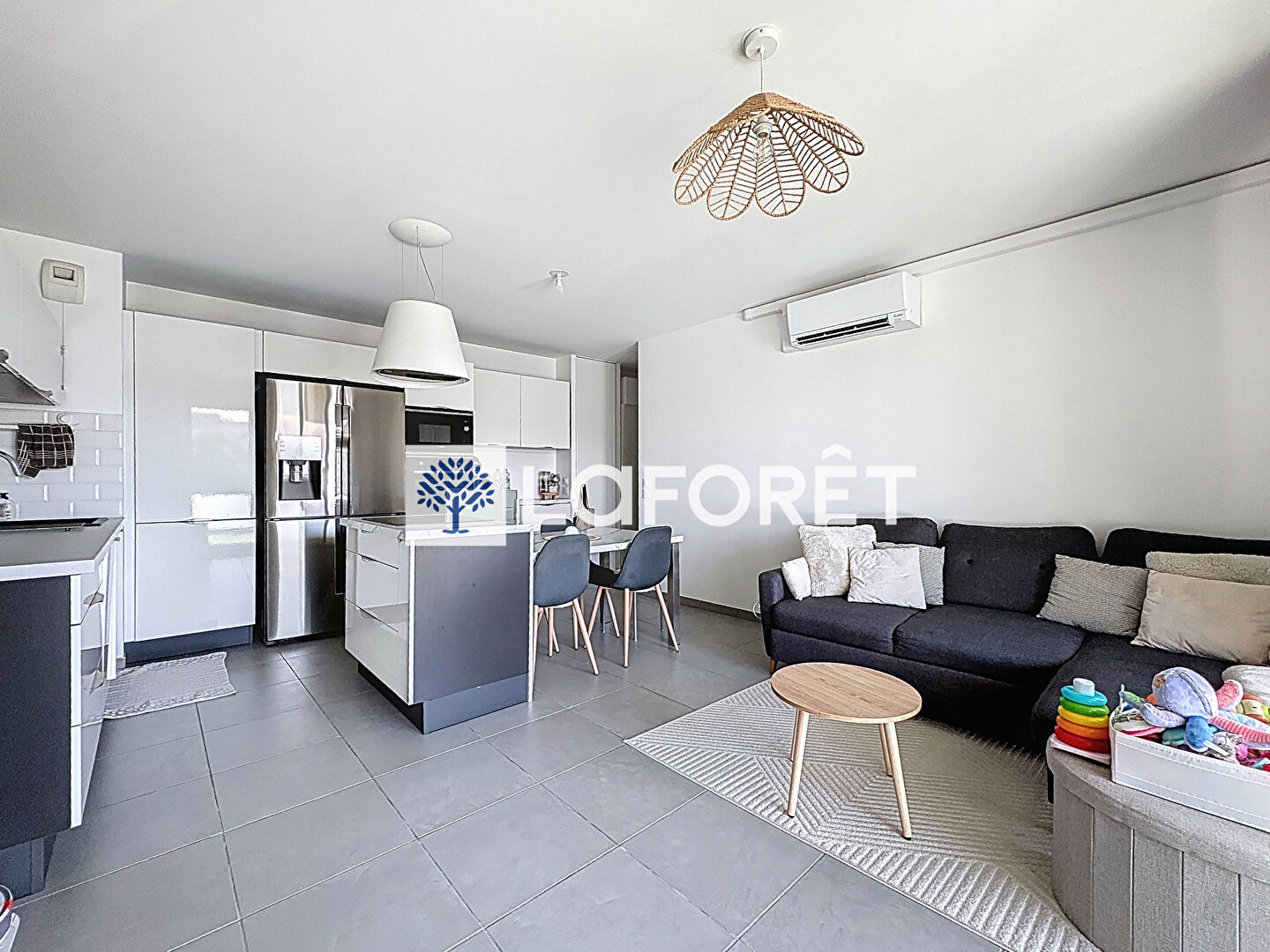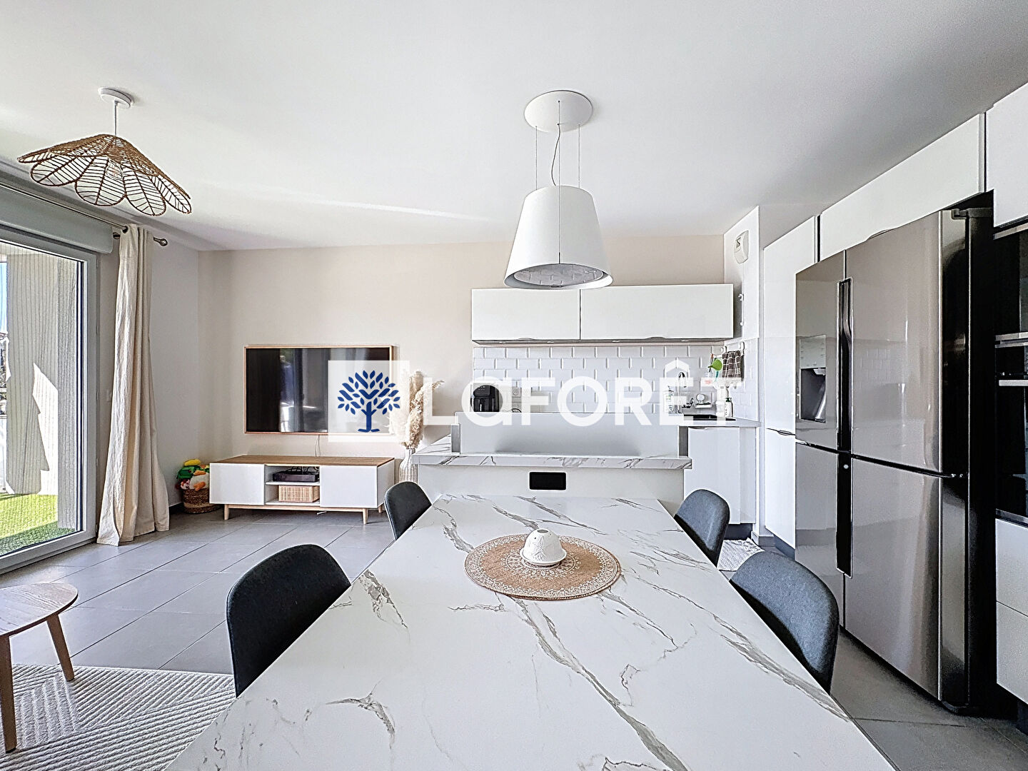 L'appartement se compose d'une entrée fonctionnelle avec placards desservant un séjour lumineux ouvert sur une cuisine moderne et équipée, créant ainsi un espace de vie convivial et agréable au quotidien. La pièce de vie bénéficie d'un accès direct à une grande terrasse, idéale pour profiter des beaux jours.