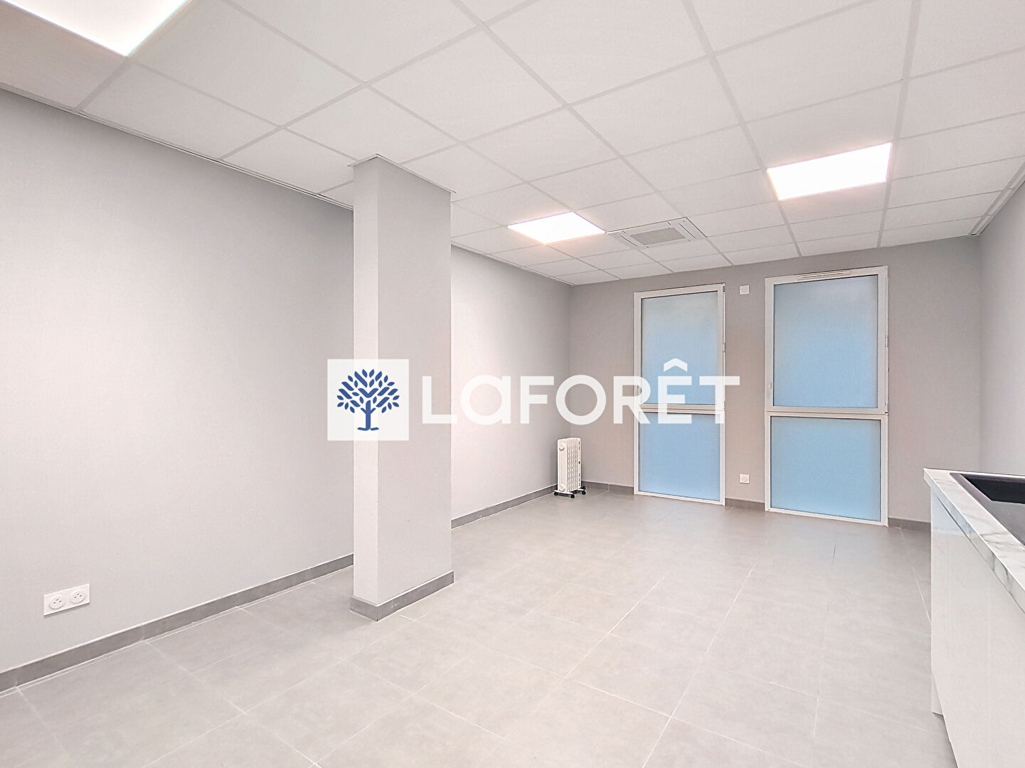 D'une surface totale de 36.69 m², le local est composé d'une salle d'attente, un bureau ou cabinet, une cuisine et un WC. Possibilité de louer en sus une place de stationnement privative en sous-sol.