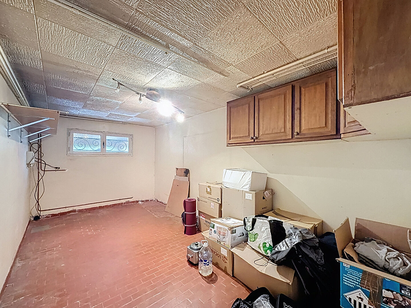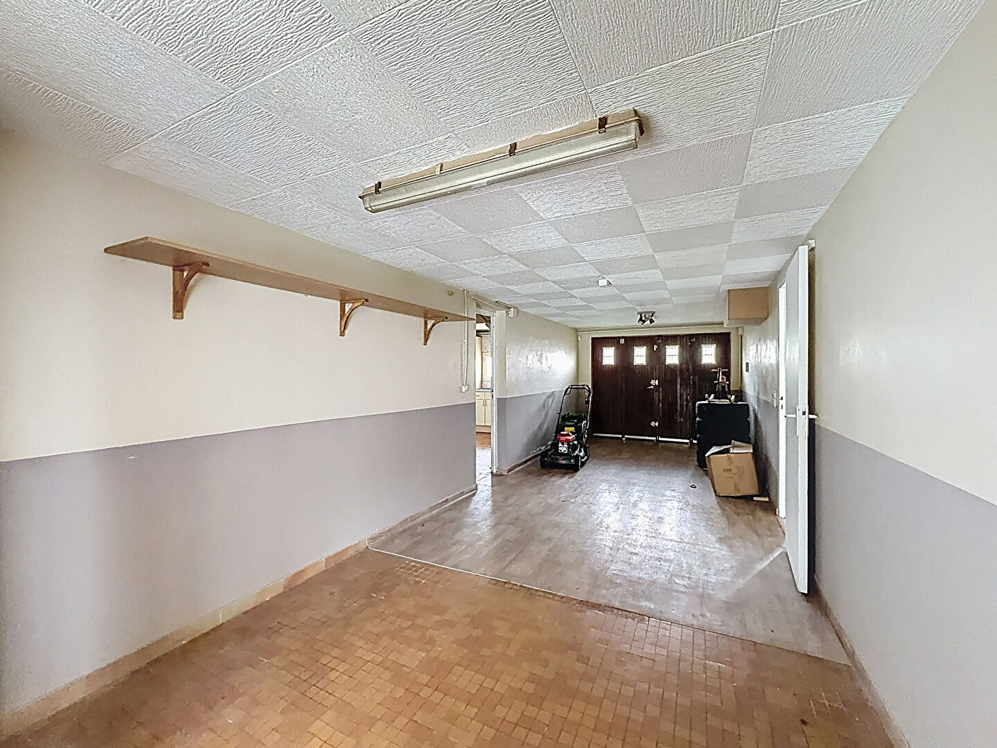 Elle se compose, au rez-de-chaussée, d'une entrée avec un espace bureau ainsi qu'un WC. Sur ce même niveau, vous aurez accès au sous-sol comprenant un garage, une pièce pouvant faire office de stockage ainsi qu'une cuisine d'été.