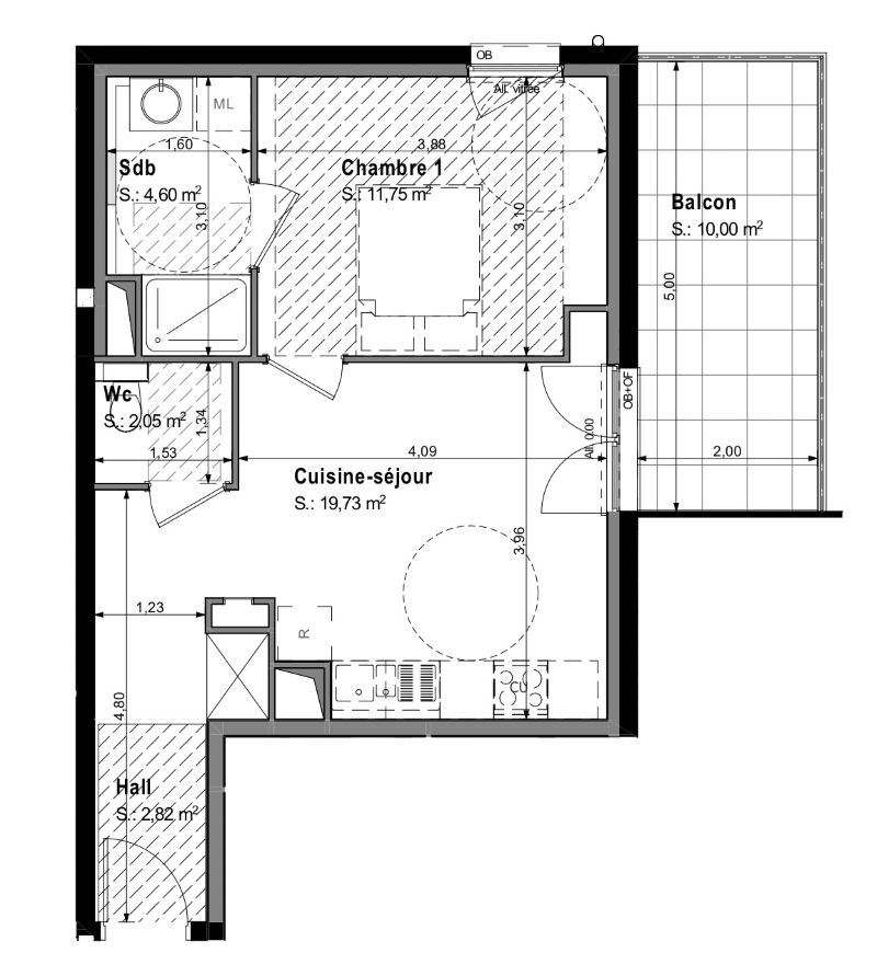 Spacieux appartement 2 pièces de 41m², situé au 1er étage. Le logement se compose d'un grand espace séjour / cuisine de 20m² s'ouvrant sur un balcon de 10m², d'une belle chambre de 12m², une salle de bain moderne et toilettes séparées.