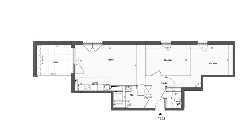au coeur de la ville de ST Louis appartement F3 de 67.05m2 avec une terrasse privatif de 8.84m2 comprenant DEUX chambres a coucher de 11.74m2 , 14.92,une cuisine de 4 m2 ouverte sur un séjours de 23.25m2 avec acces a la terrasse . une salle de bain de 6m2 avec wc separé