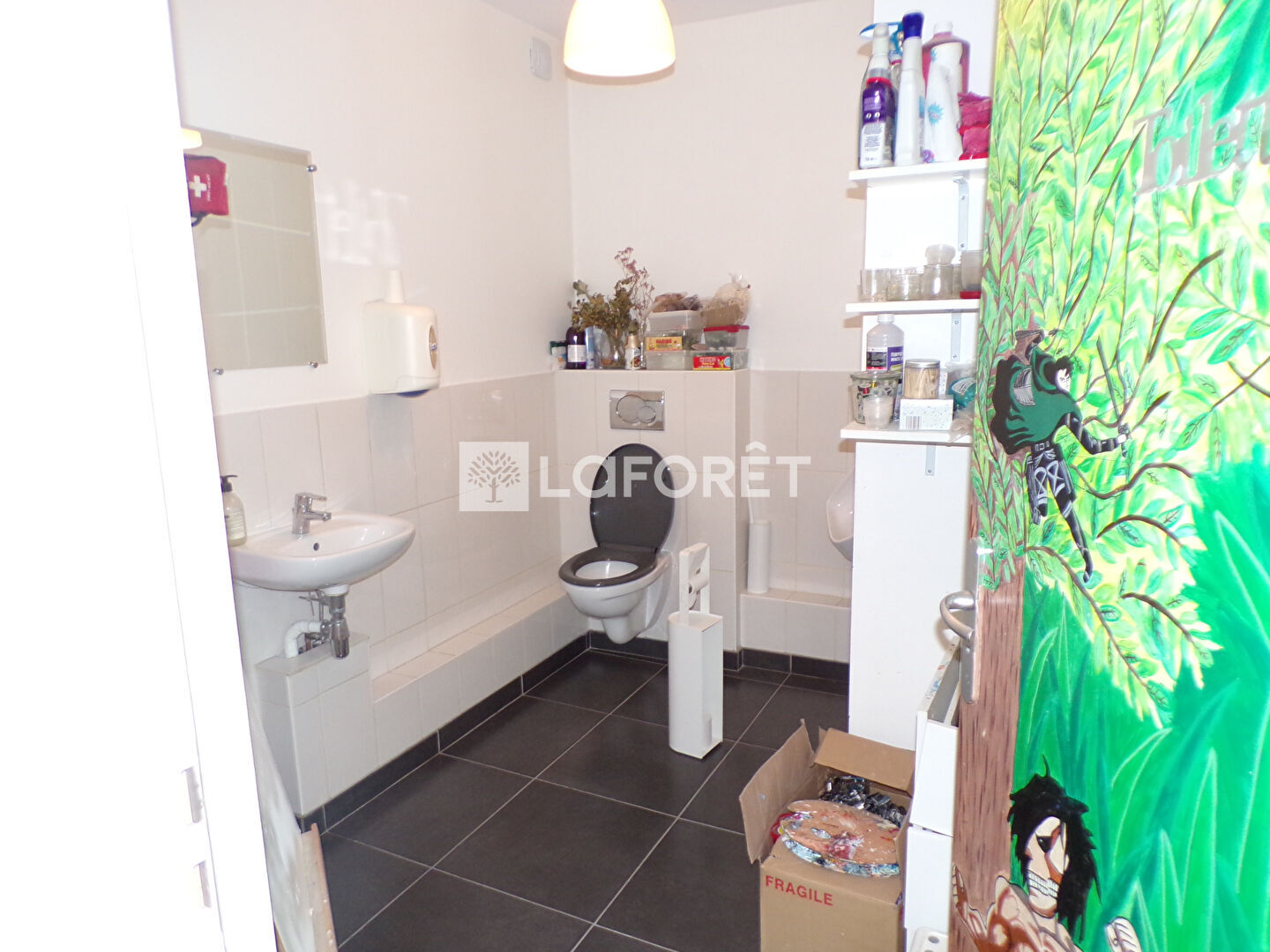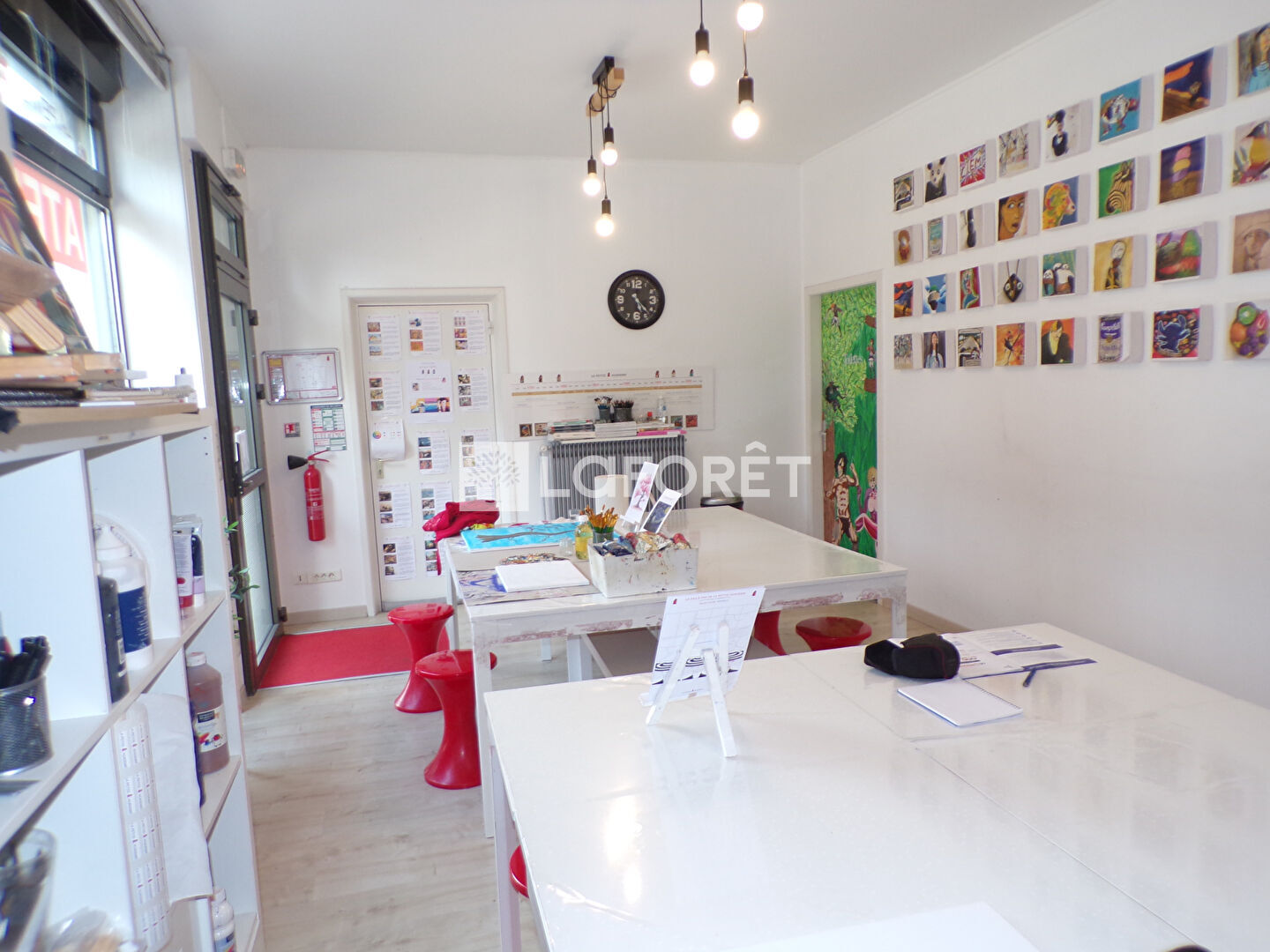 Rare à la location, à proximité d'autres commerces, spacieux local commercial de 79m² en "open-space" avec deux vitrines et deux entrées disposant également d' un espace sanitaires ainsi qu'un local annexe de 35m² comprenant une salle d'eau avec douche, un WC, un coin kitchenette à finir d'aménager et une pièce aveugles. Ce bien comprend également deux places de parking et une cave.