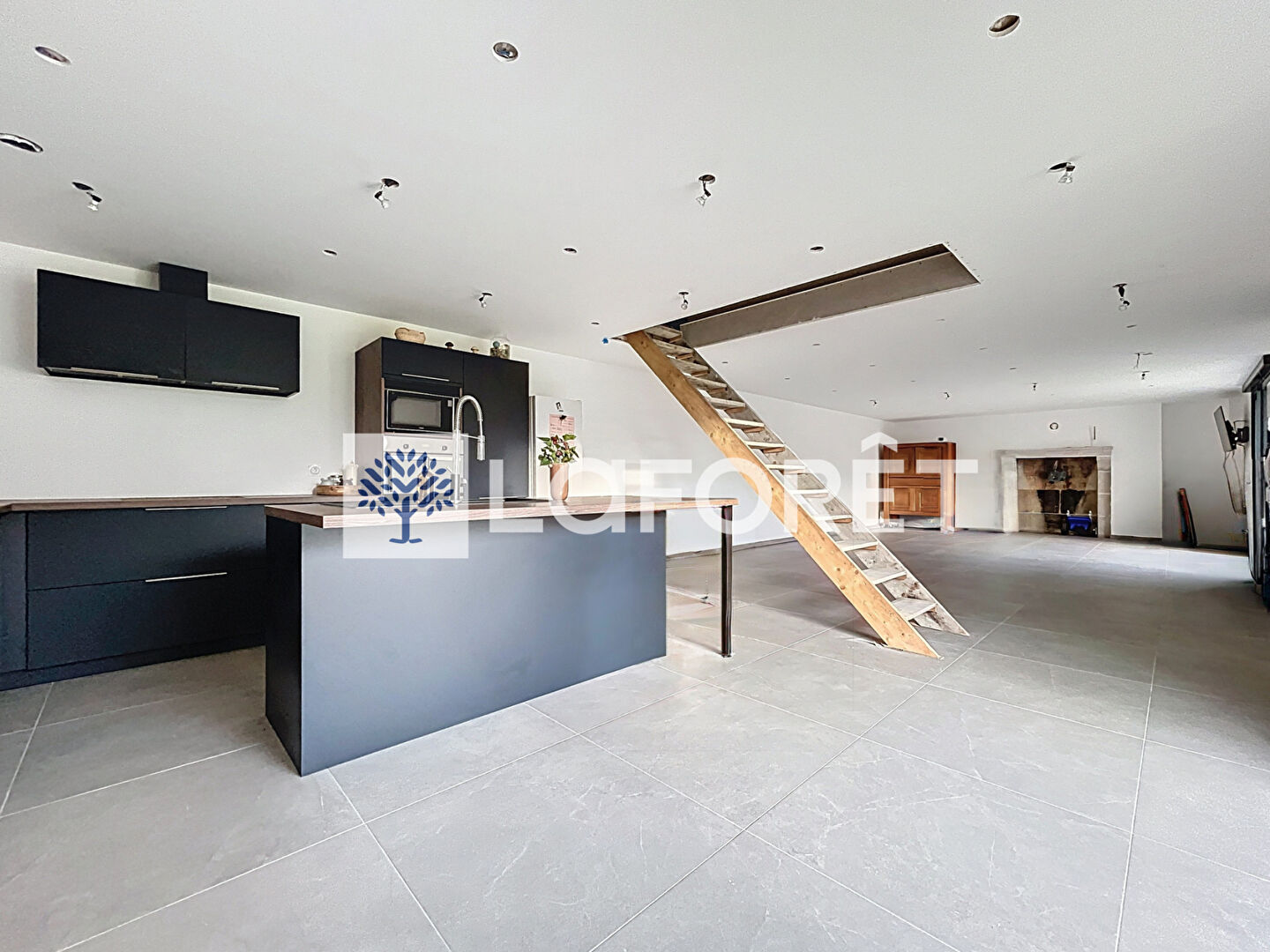 Le rez-de-chaussée est entièrement rénové avec un espace de vie confortable de 72 m2, comprenant une cuisine équipée avec îlot central, une salle d'eau, un wc et une chaufferie.