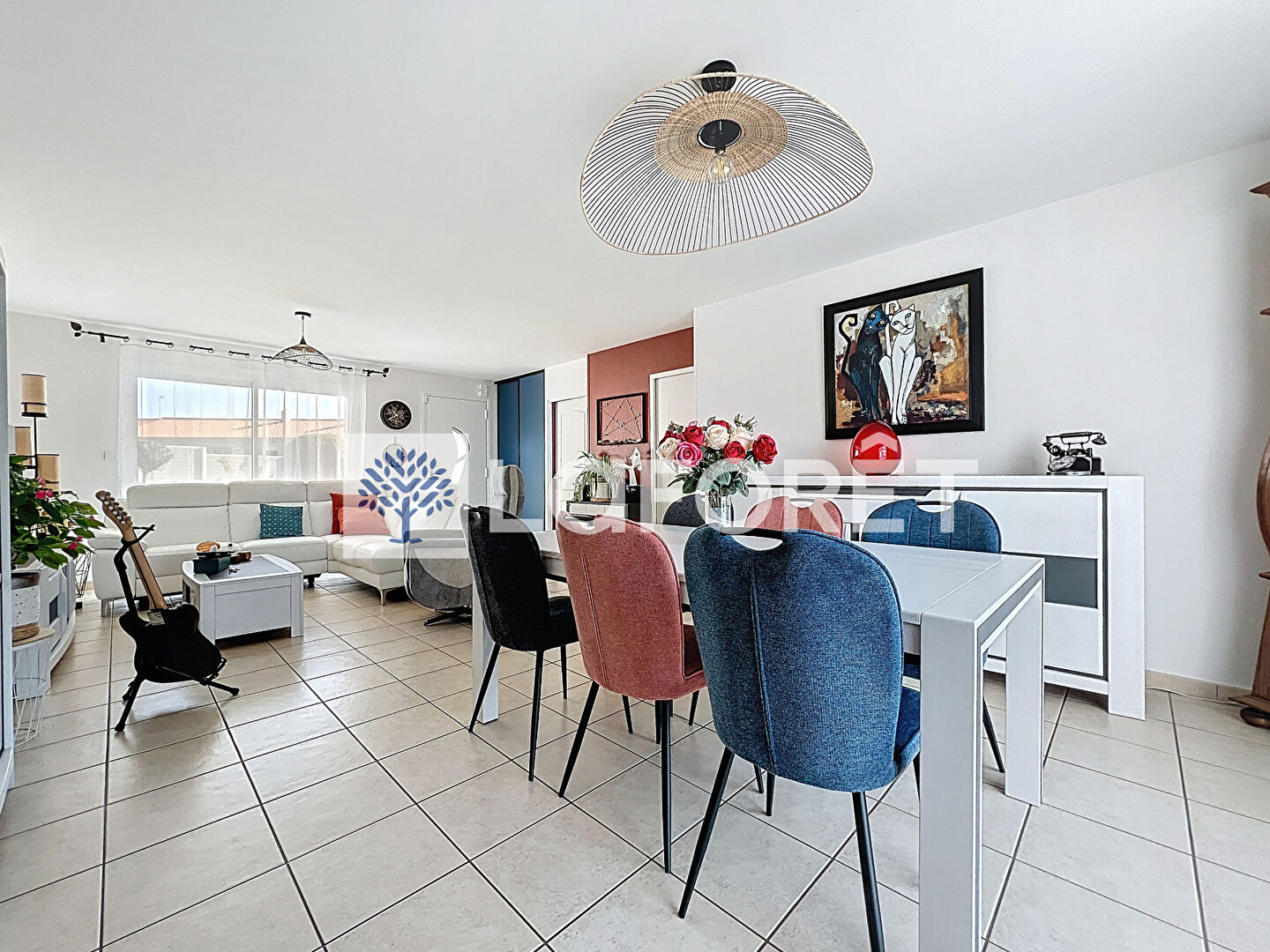 Le coeur de la maison s'articule autour d'un vaste salon-séjour baigné de lumière, ouvert sur une cuisine contemporaine récente (2023). Les lignes épurées et les équipements haut de gamme apportent une vraie touche de modernité. L'espace nuit se compose de quatre chambres (ou trois chambres et un bureau), complété par une salle d'eau élégante, entièrement refaite en 2023, et un WC séparé.