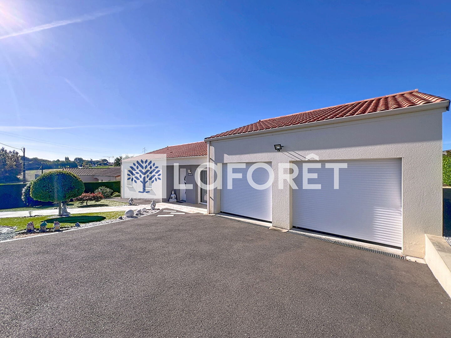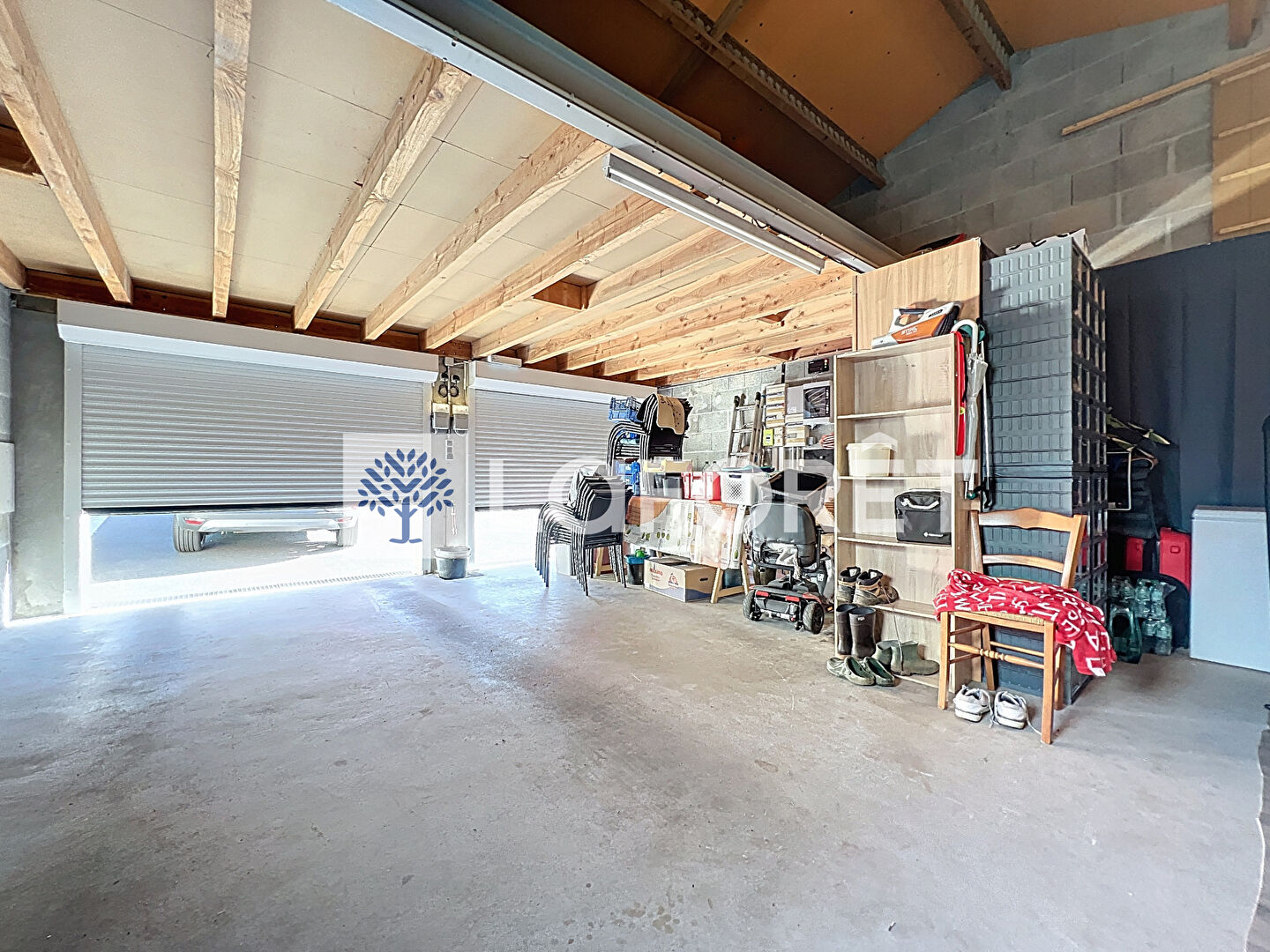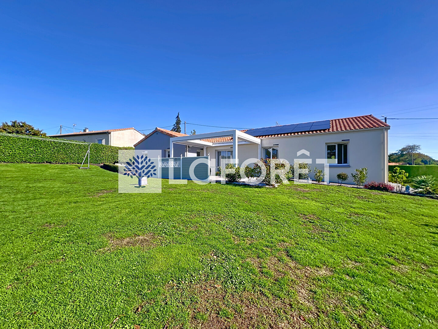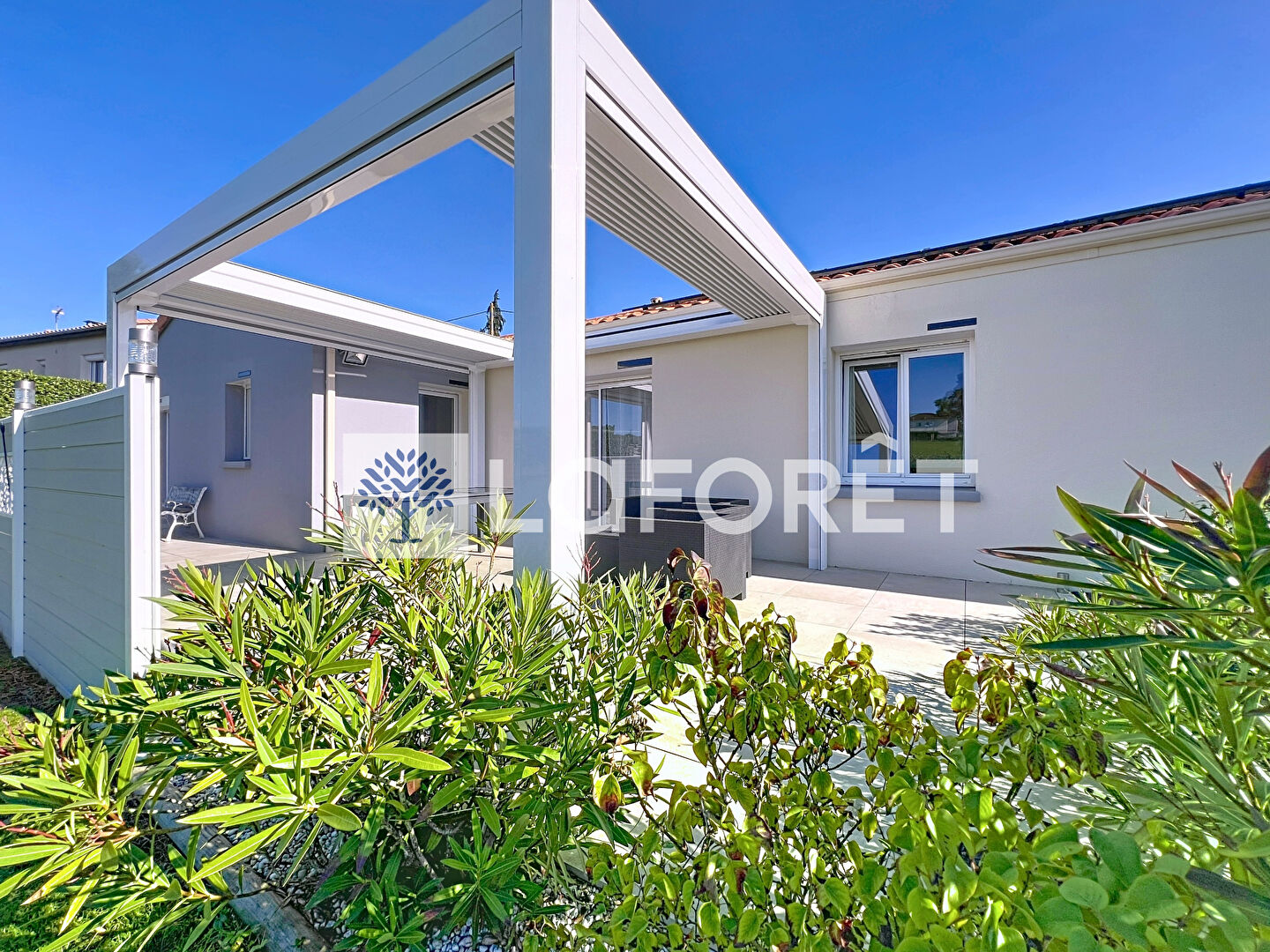 À l'avant, enrobé et gazon synthétique ; à l'arrière, gazon naturel entretenu par un robot tondeuse (inclus dans la vente). Une terrasse avec pergola bioclimatique récente, prolonge agréablement l'espace de vie. Enfin, un garage spacieux avec double porte motorisée (2025) vient parfaire l'ensemble.