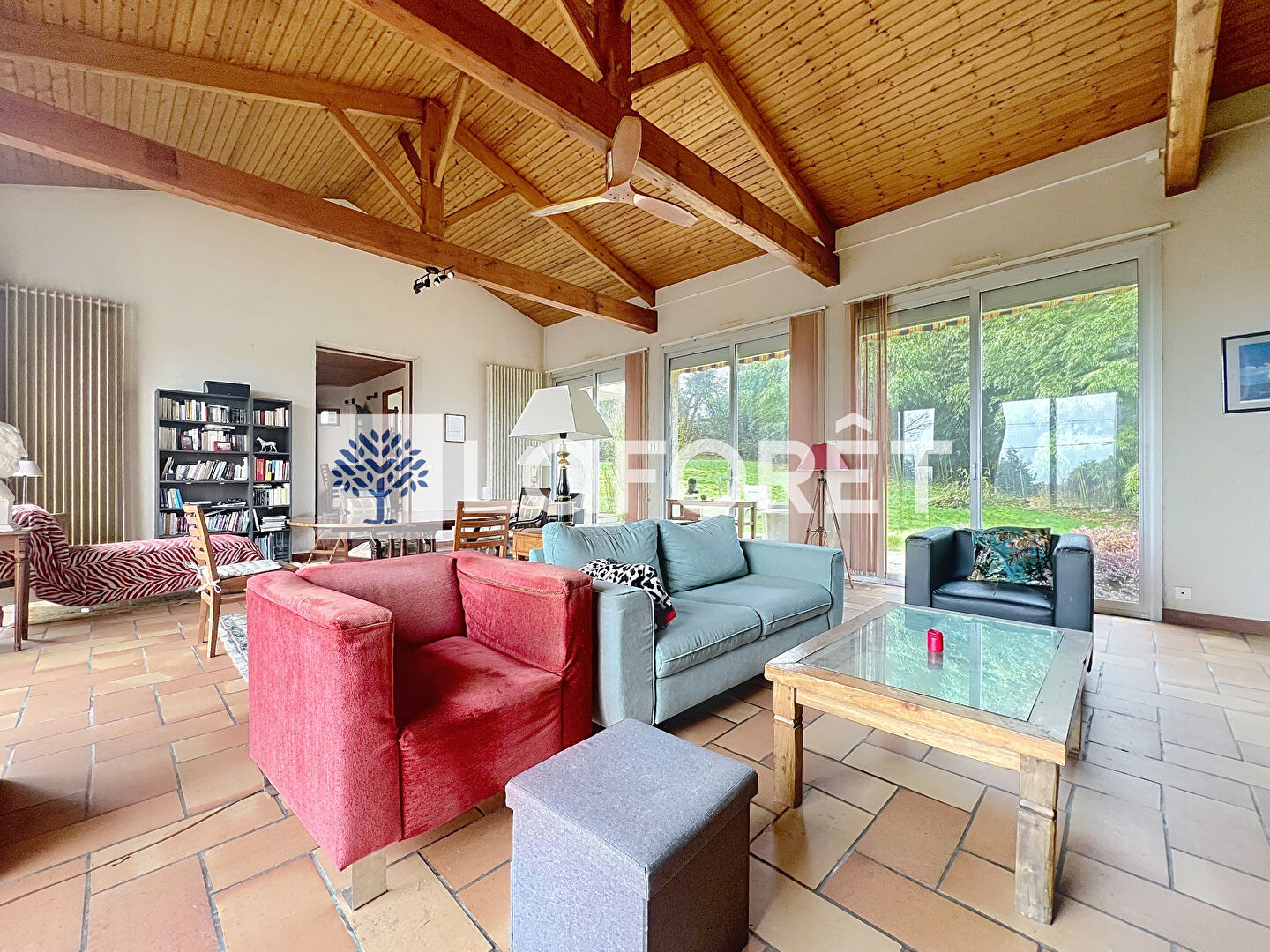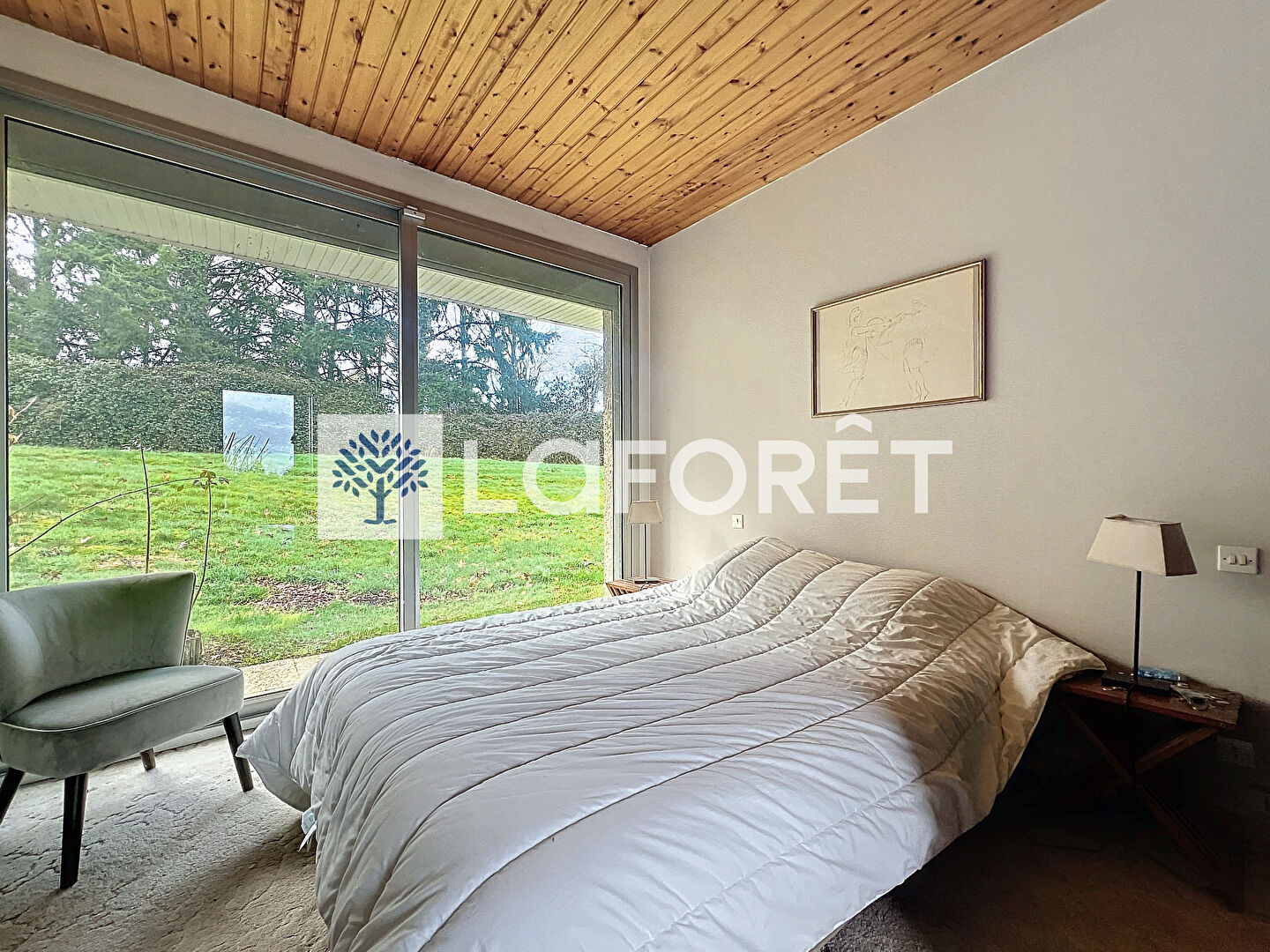 Elégante maison d'architecte à proximité du centre bourg développe 195 m2 habitables sur un parc de 7250 m2, accessible par une allée centrale enrobée.
