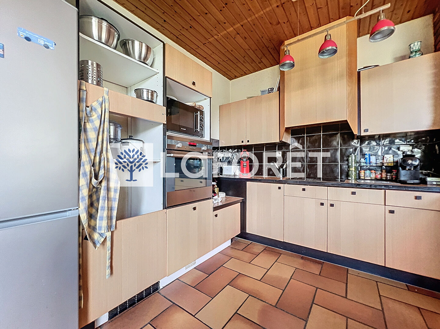 Dès l'entrée, vous serez séduit par son grand salon-séjour baigné de lumière grâce à ses larges baies vitrées, offrant une belle hauteur sous plafond et un insert pour des soirées chaleureuses. Cet espace s'ouvre sur une cuisine aménagée et entièrement équipée.