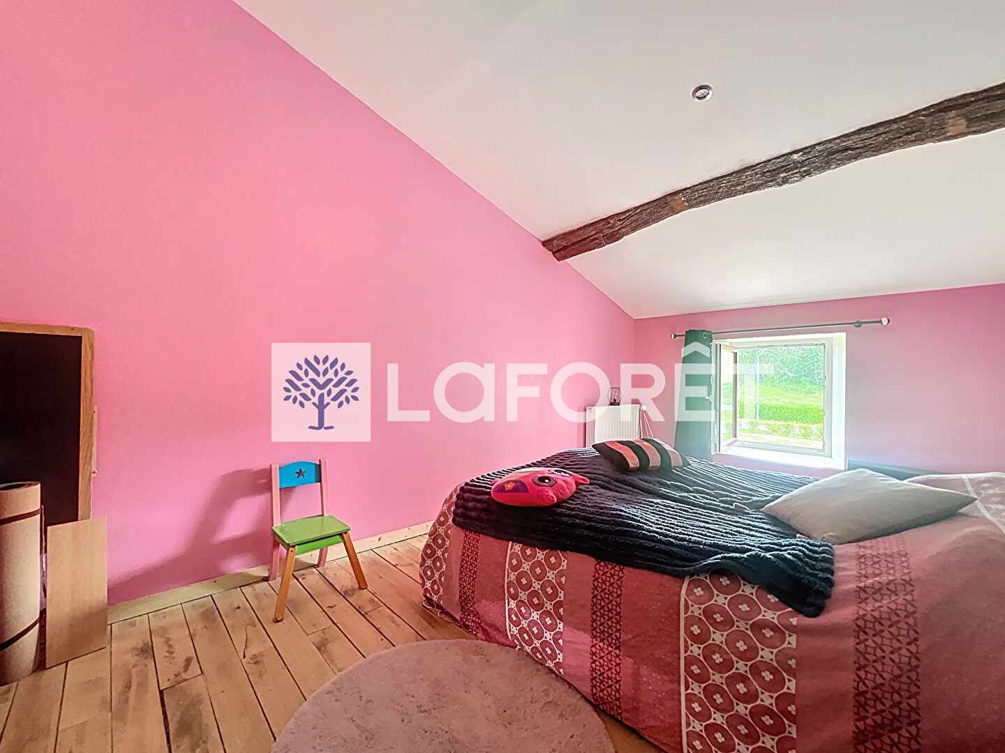 A l'étage, vous découvrirez trois chambres spacieuses, lumineuses , toutes dotées de jolis parquets massifs et de belles poutres apparentes , alliant charme et authenticité ainsi qu'un palier de 31 m2 idéal pour créer une salle de jeux, un bureau ou un espace détente. Une future salle de bains de 15,8 m² est à finir d'aménager selon vos envies.