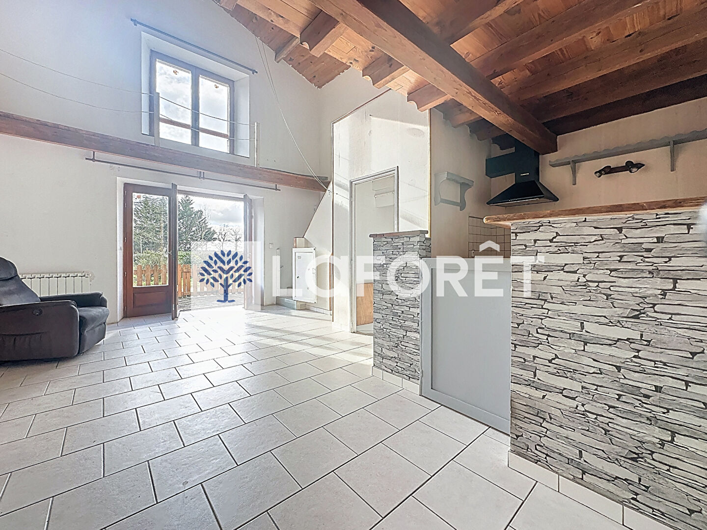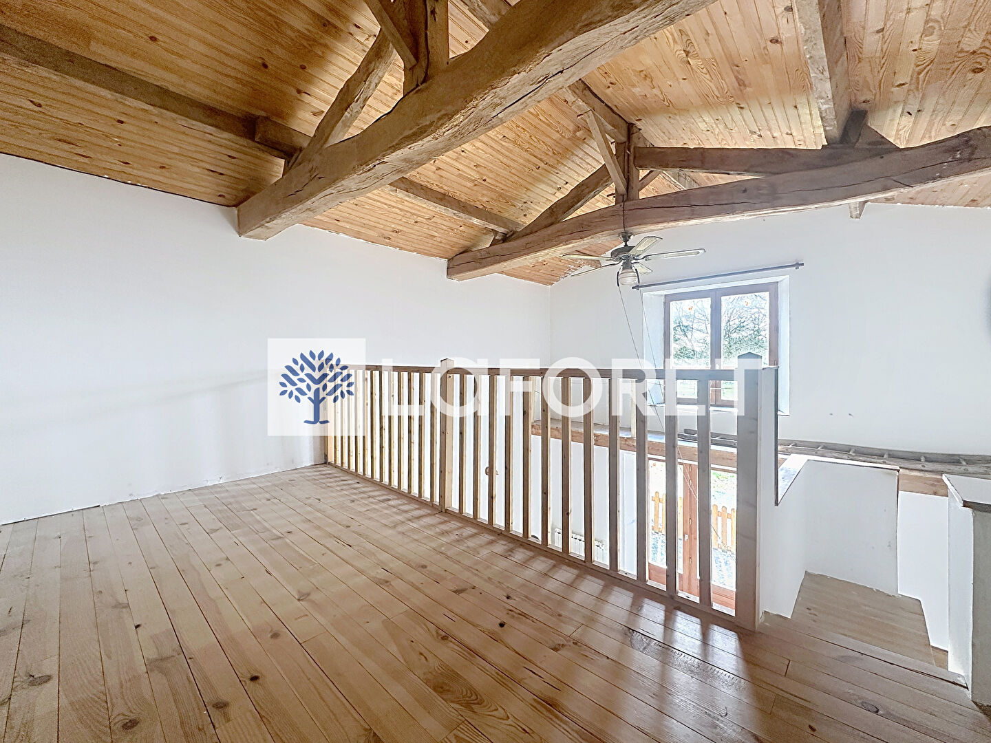 La maison s'ouvre sur une grands pièce de vie lumineuse de 31 m², bénéficiant d'une belle hauteur sous plafond et donnant sur une mezzanine, apportant volume et charme à l'ensemble. La cuisine, aménagée et équipée est ouverte sur cet espace convivial.