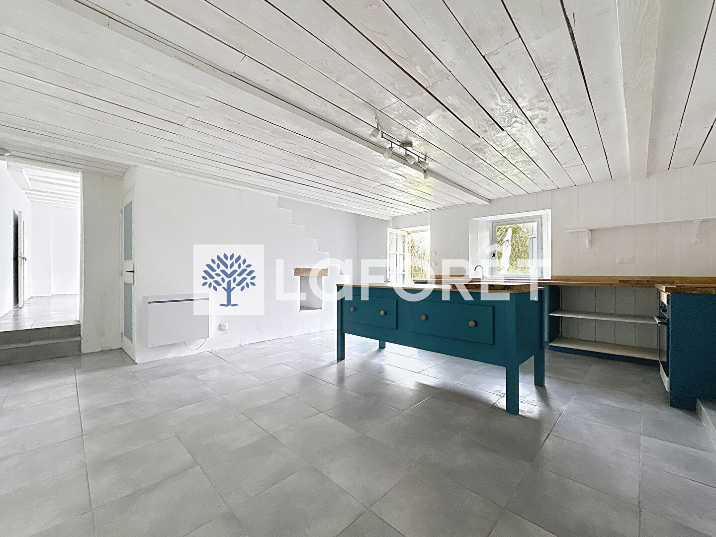 Le rez-de-chaussée accueille une grande cuisine aménagée et équipée, ouverte sur un salon lumineux réchauffé par un poêle à bois. Une pièce annexe, modulable selon vos envies, pourra devenir un salon supplémentaire, une salle de jeux ou encore un bureau.