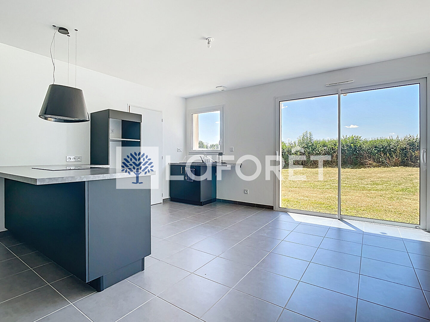 Cuisine ouverte sur une grande pièce de vie baignée de lumière