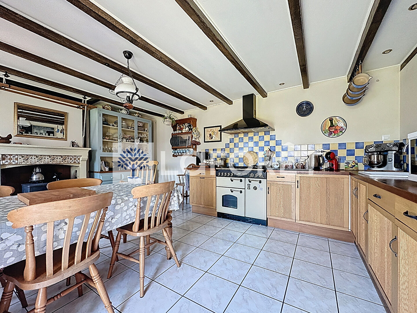 Elle se compose au rez-de-chaussée d'une belle cuisine aménagée et équipée (plaque de cuisson, four, hotte), d'une salle à manger avec cheminée, ainsi que d'un salon confortable ouvrant sur une terrasse couverte, idéale pour profiter des beaux jours. Vous trouverez également une salle d'eau et un wc indépendant.