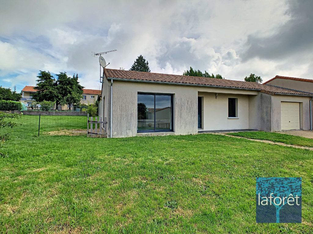 Maison située à Bressuire dans un environnement calme en quartier résidentiel : Pavillon de plain pied comprenant quatre chambres, une cuisine aménagée et équipée (hotte aspirante plaque de cuisson, et four), une pièce de vie de 36 m2, une salle d'eau, un WC indépendant, un garage, une terrasse et un jardin clôturé.