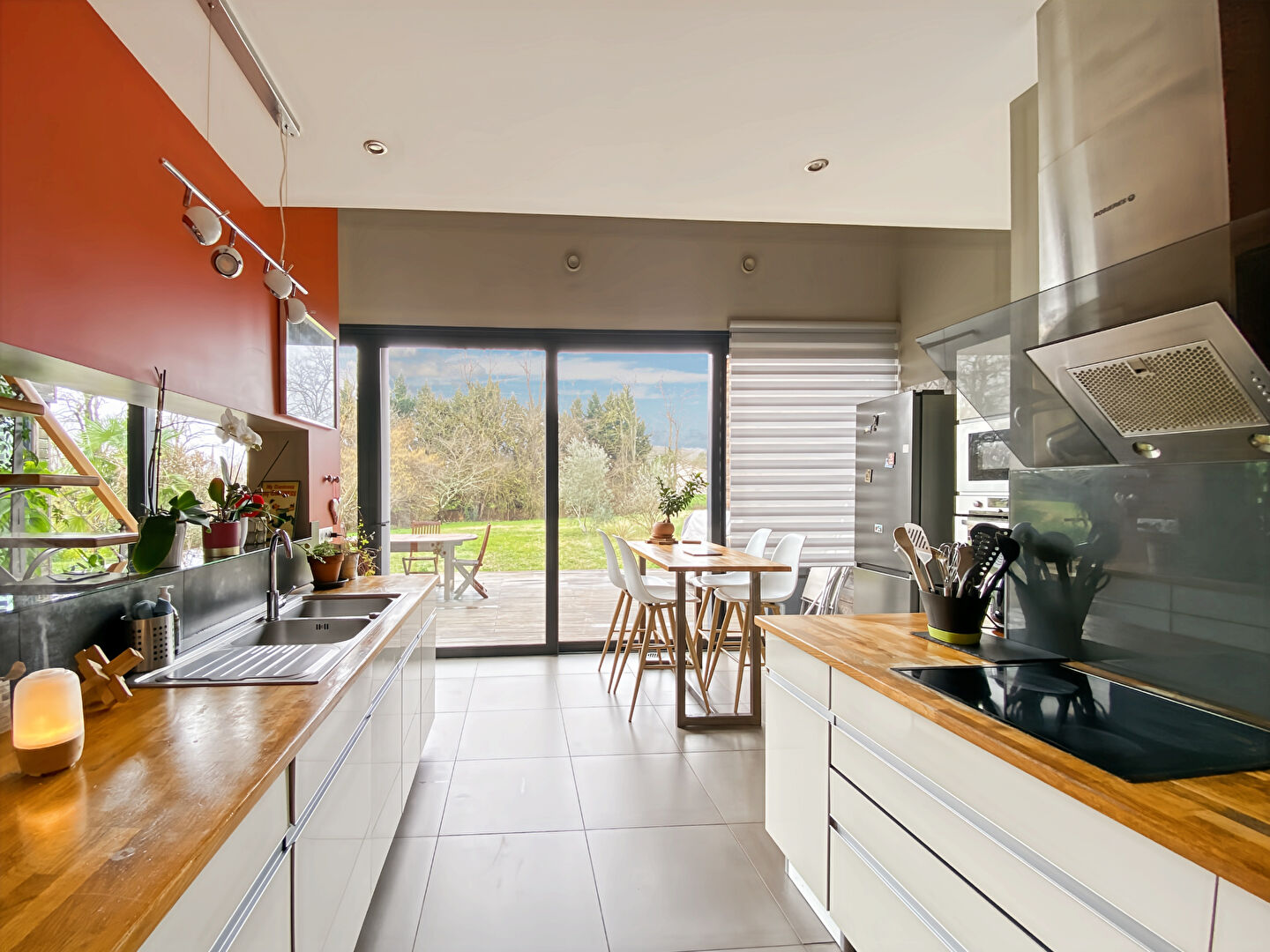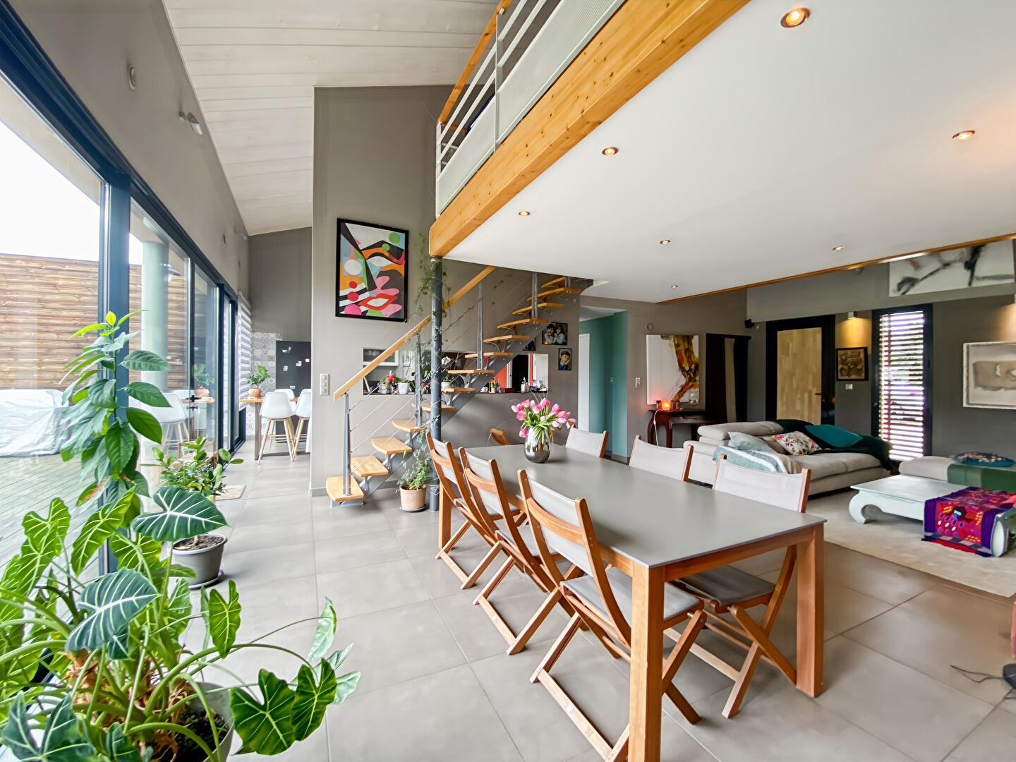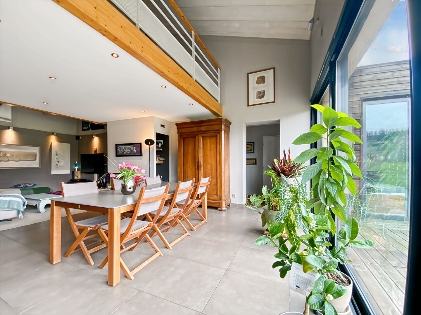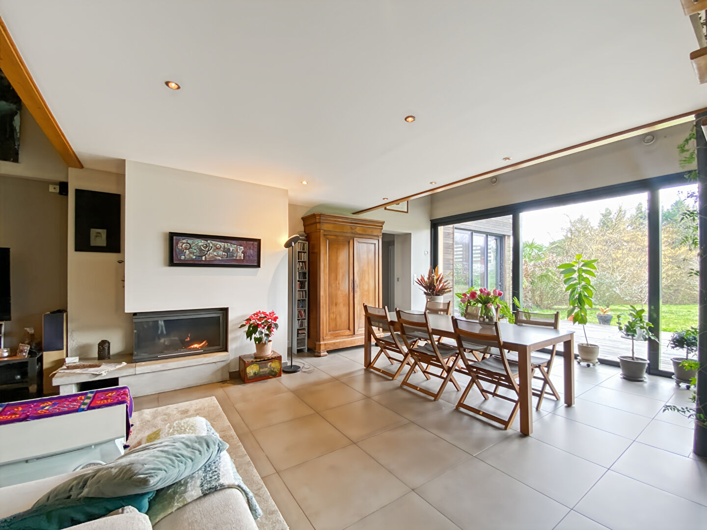 Dès l'entrée, vous serez séduits par ses volumes généreux et la luminosité de son espace de vie, harmonieusement ouvert sur une agréable terrasse en bois et le jardin. Un cadre idéal pour profiter de moments conviviaux en famille ou entre amis.