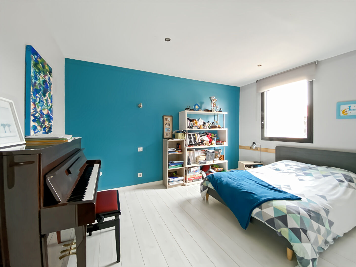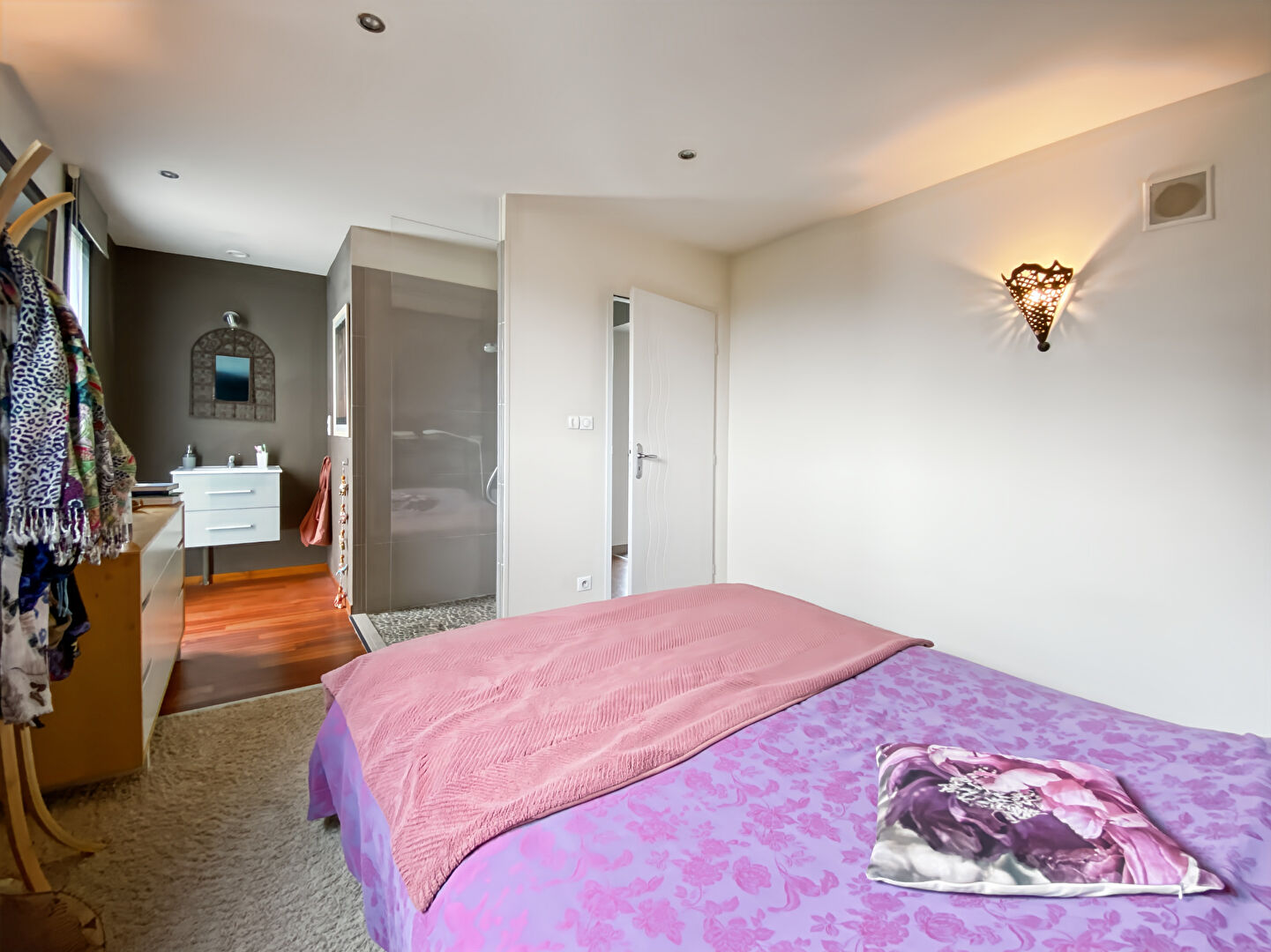 À l'étage, une grande chambre avec sa salle d'eau offre un espace indépendant parfait pour un adolescent, des invités ou un bureau.