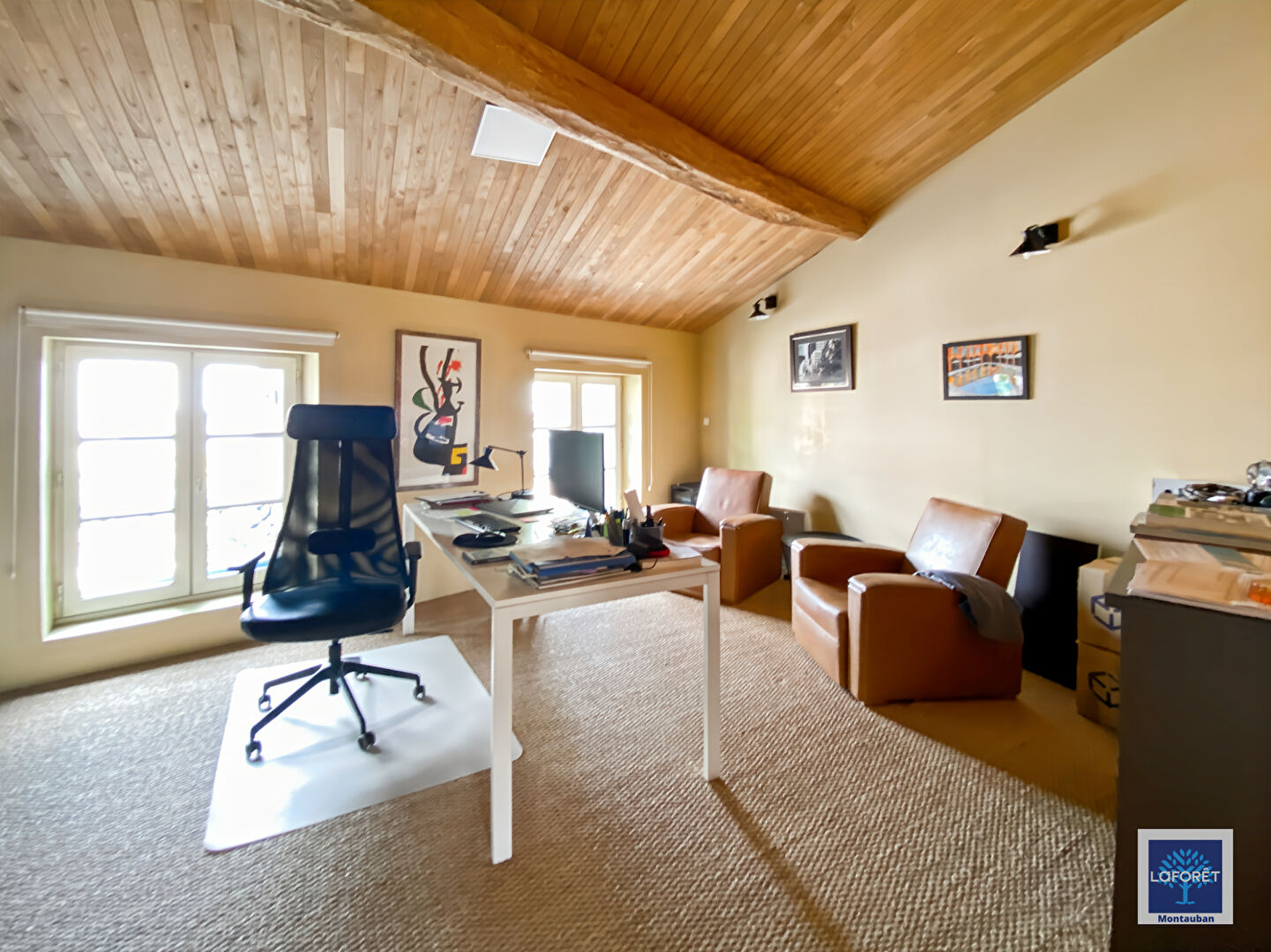 A l'étage un salon1 bureau, ,2 chambres et 2 salles d'eau, une terrasse avec vue sur le jardin.