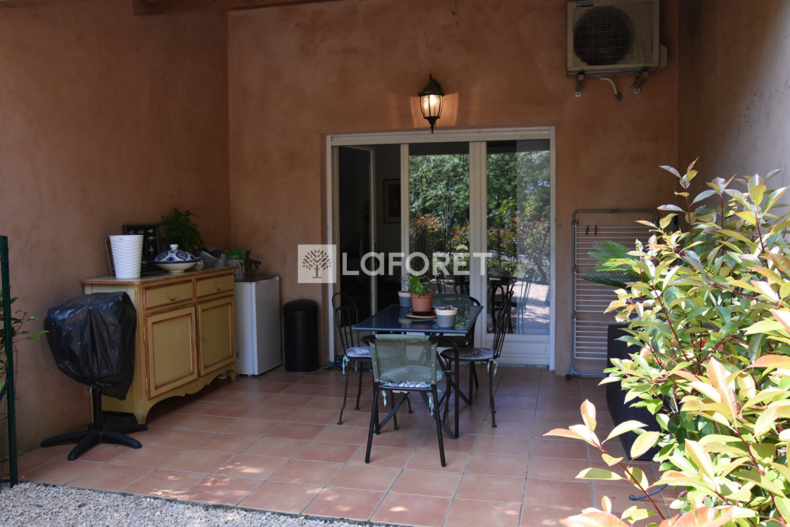 Terrasse couverte et carrelée