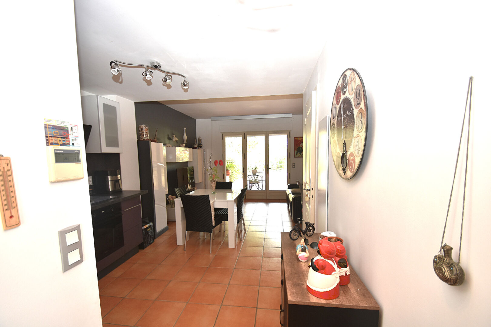 Au rez de chaussée, cuisine ouverte sur un salon sejour, cellier