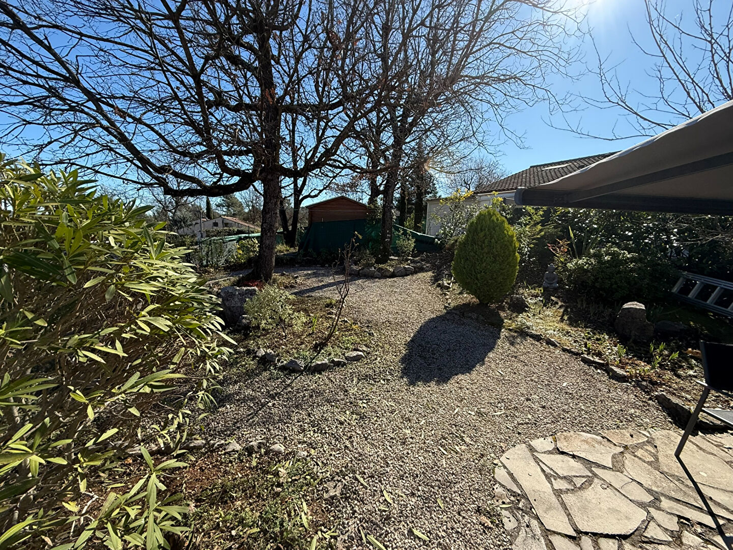 une terrasse avec un store électrique