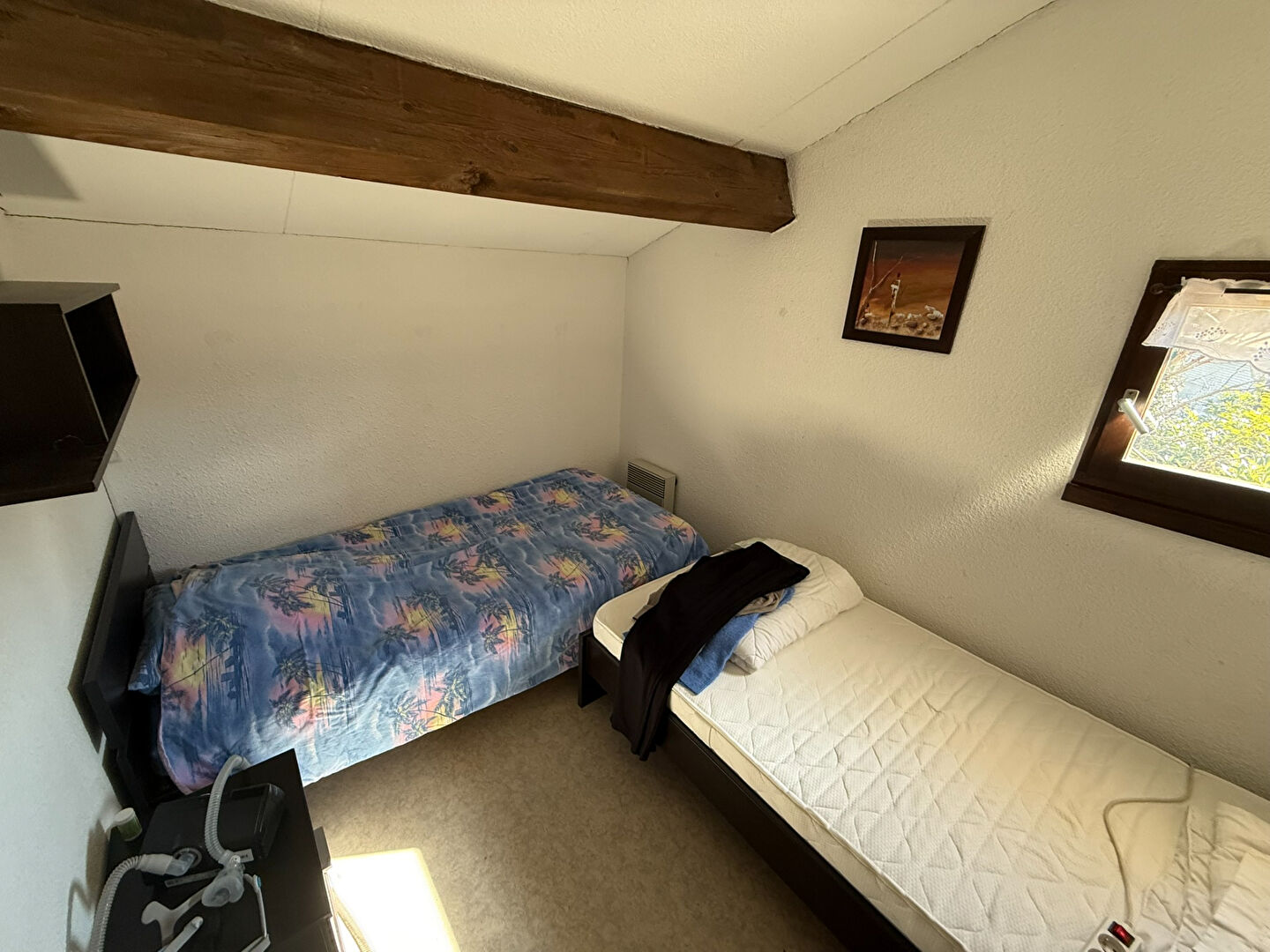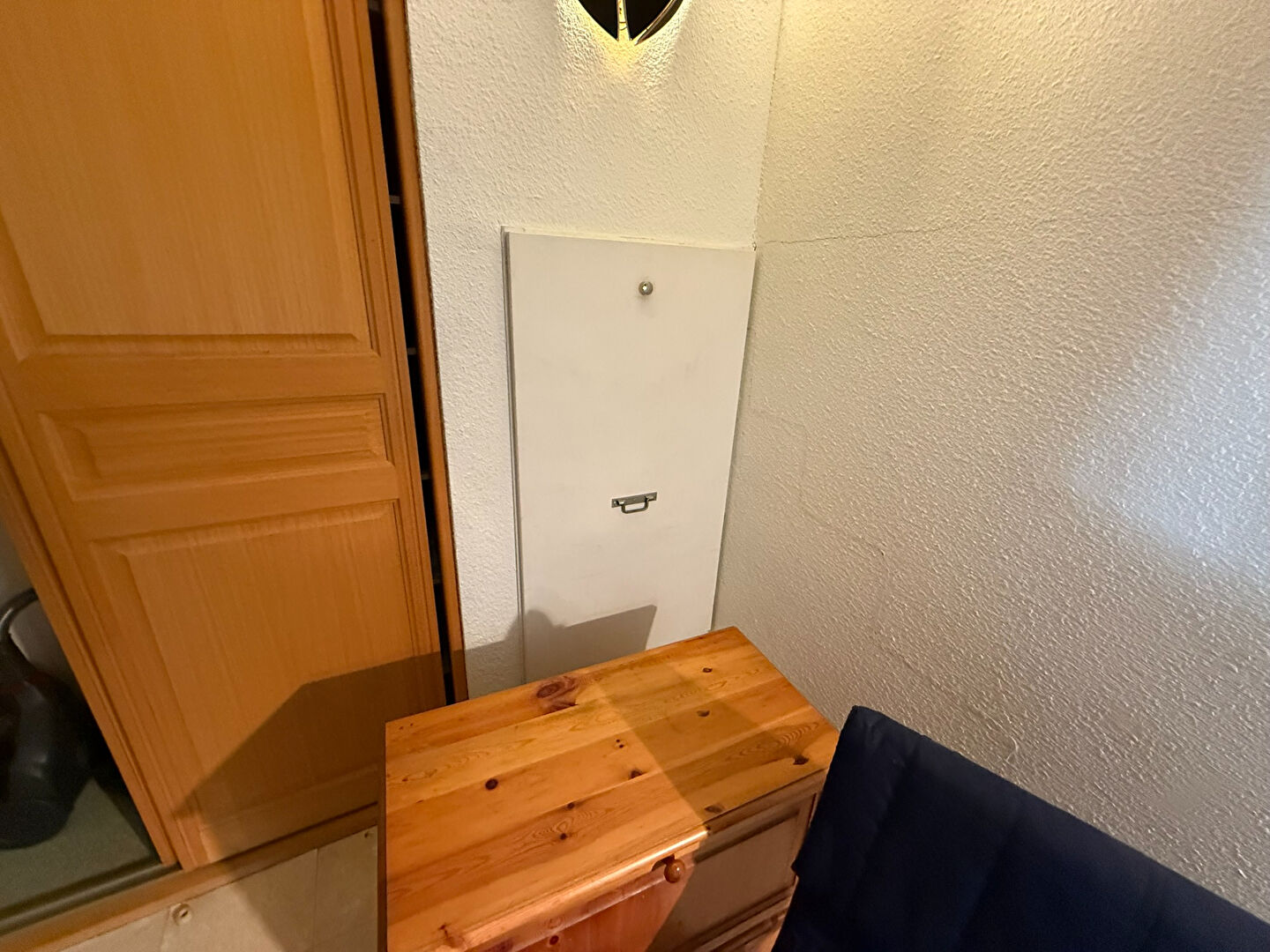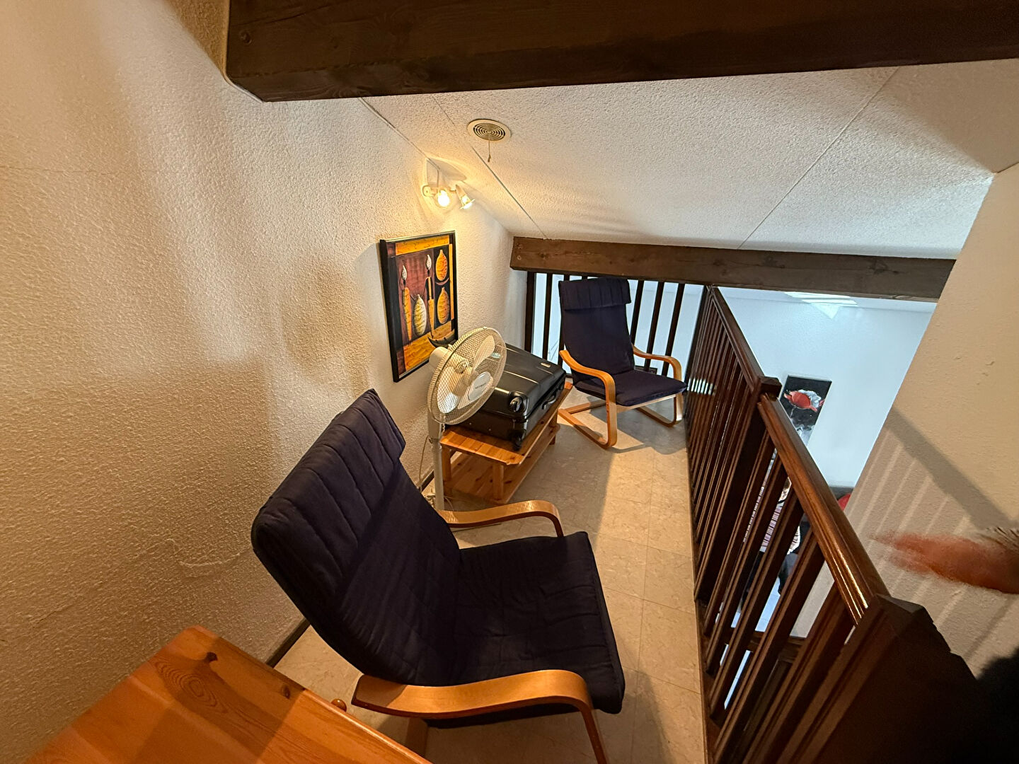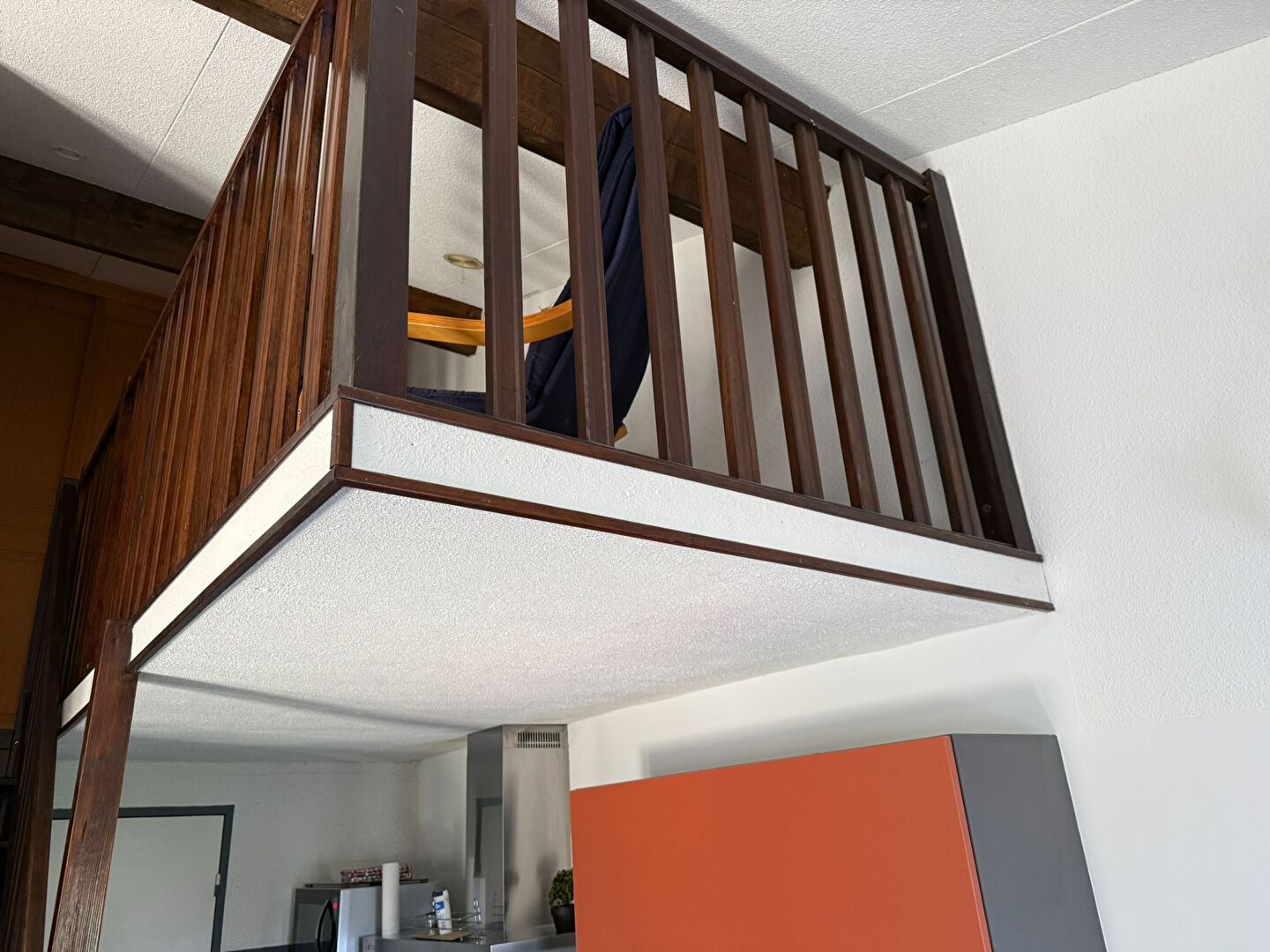 à l'étage : une chambre et une mezzanine avec un grand placard