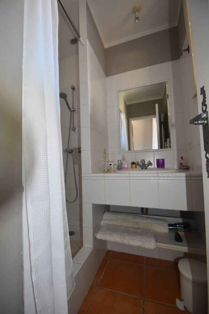 Au rez de chaussée, 1 salon sejour ouvert sur une cuisine, un cellier, 1 bureau (qui à l'origine etait une chambre) , 1 salle de bains, 2 terrasses couvertes et jardinet