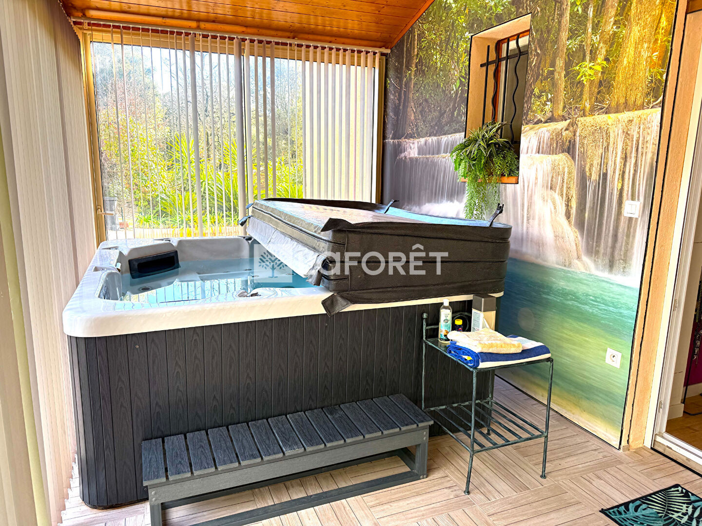 Le coin détente "Parents" : Une superbe suite avec placards s'ouvre sur une véranda isolée de plus de 20 m². Surprise de taille : elle abrite un véritable Spa 5 places pour se détendre après une journée bien remplie.