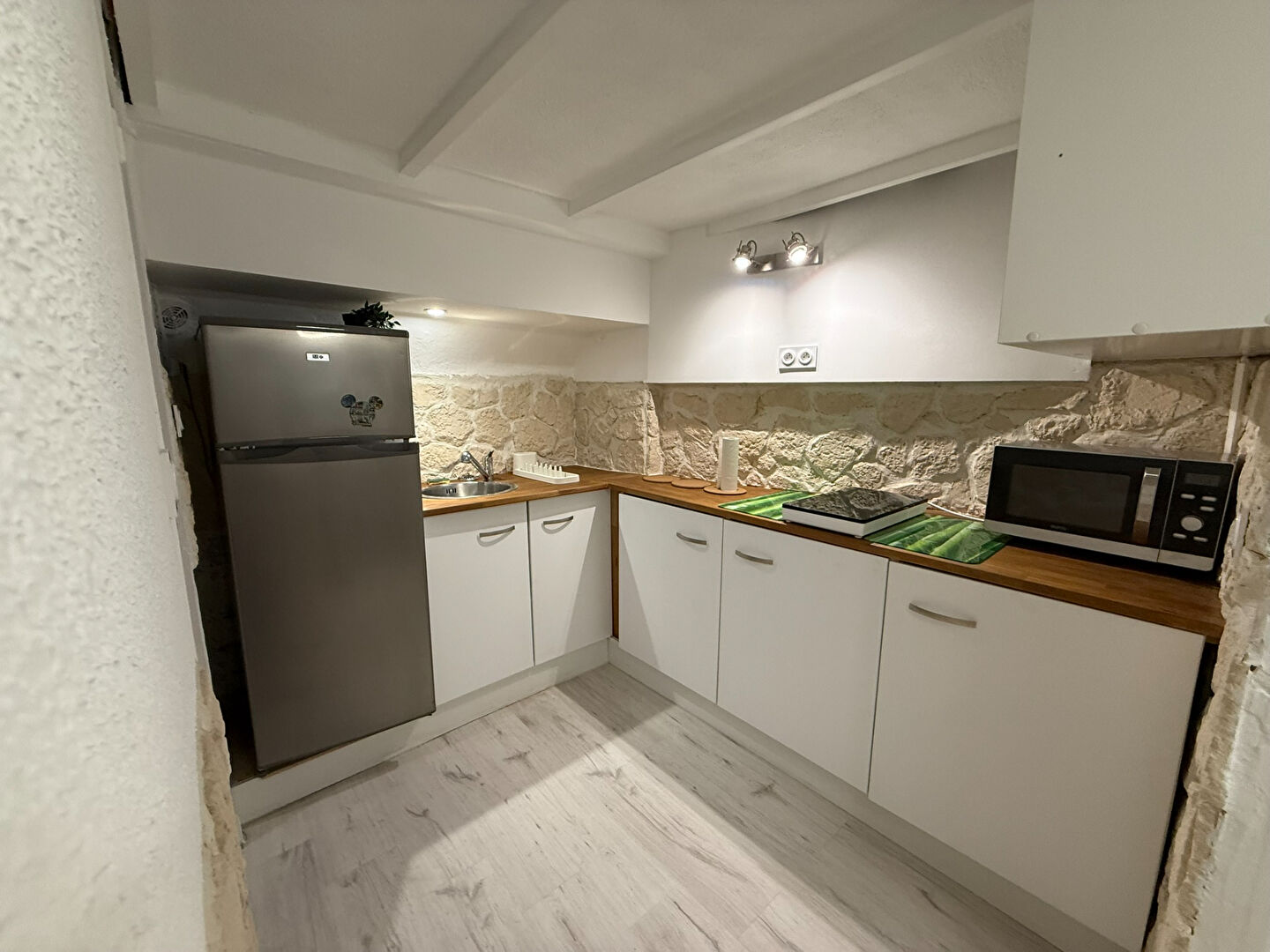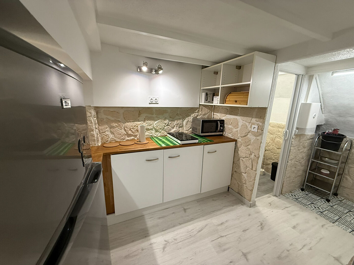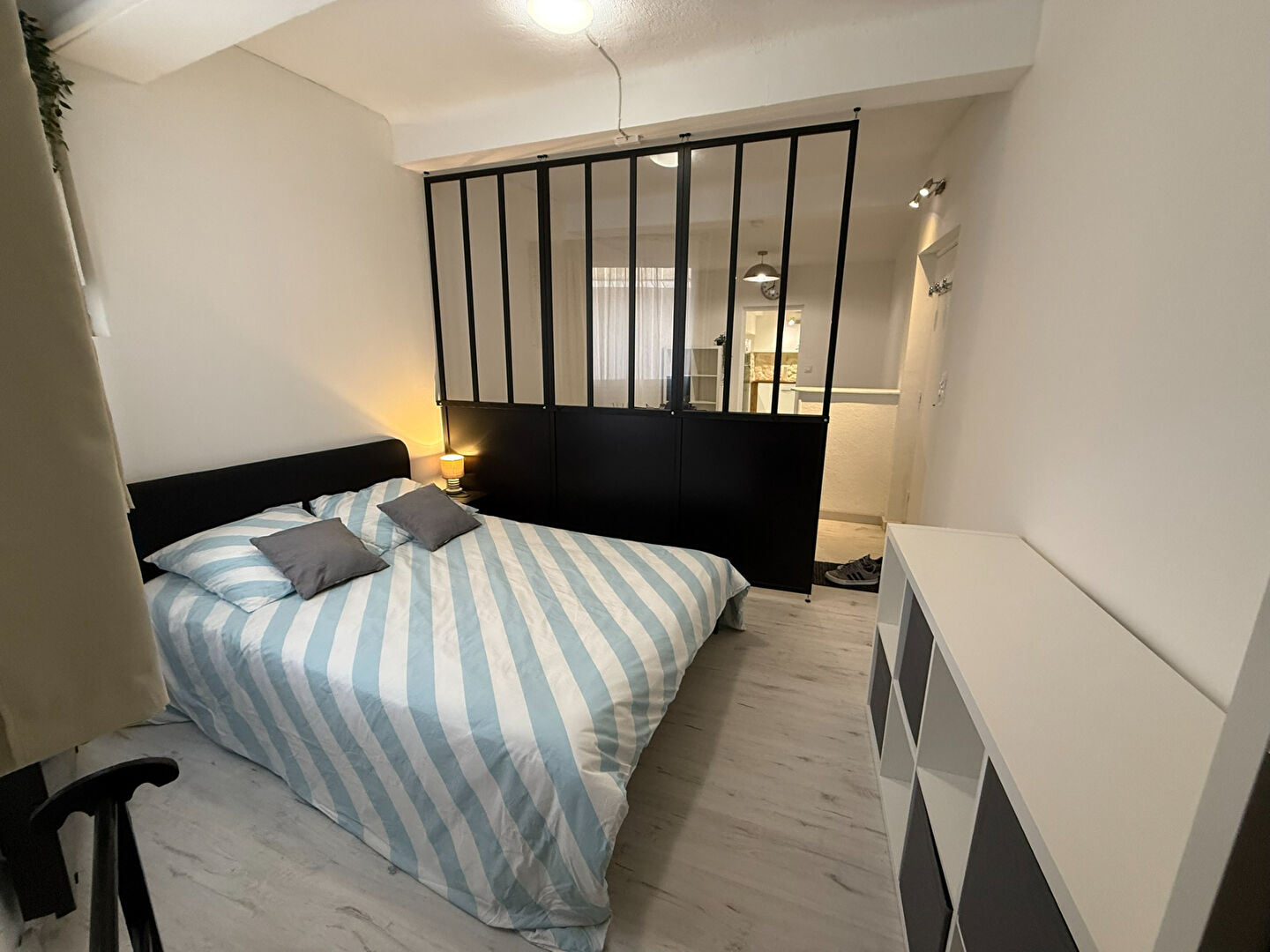 Un studio meublé rénové de 30m² , situé au RDC, comprenant une cuisine aménagée avec un équipement complet, une salle d'eau, une machin à laver; le séjour se décompose entre un espace salon et derrière une verrière une chambre.