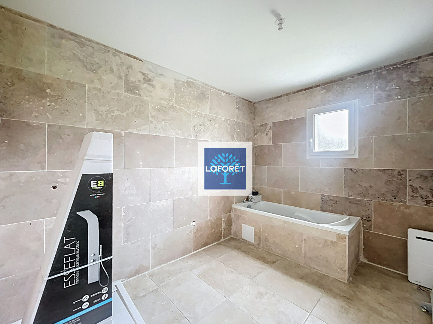 Composée d'une cuisine ouverte sur la pièce à vivre, une buanderie, 3 chambres, une salle de bains avec douche et baignoire et un WC.