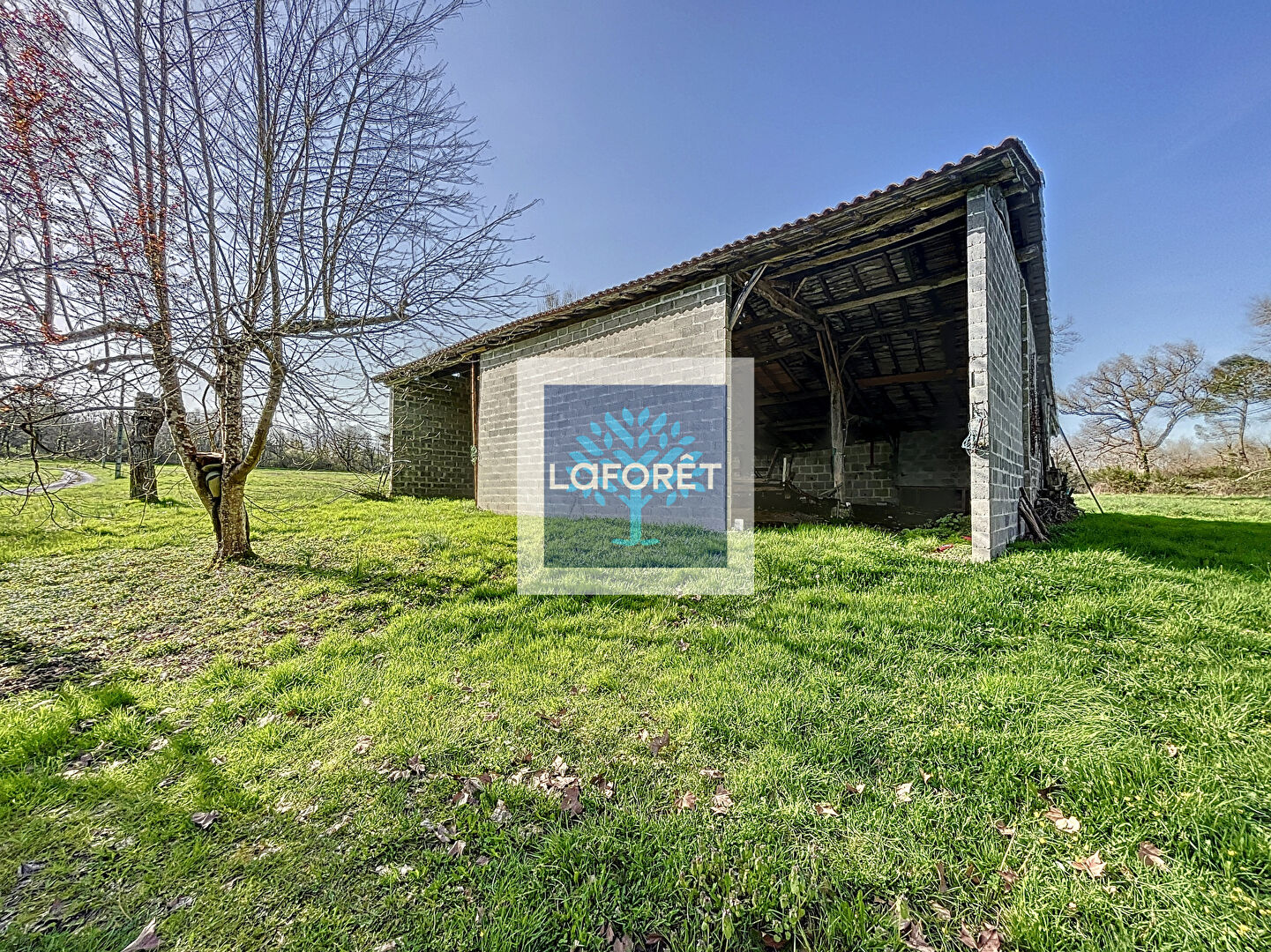 À cela s'ajoutent un hangar d'environ 200 m² et un bâtiment agricole de 160 m² à réhabiliter, le tout sur un terrain d'environ 10 hectares composé de bois et de prairies.
