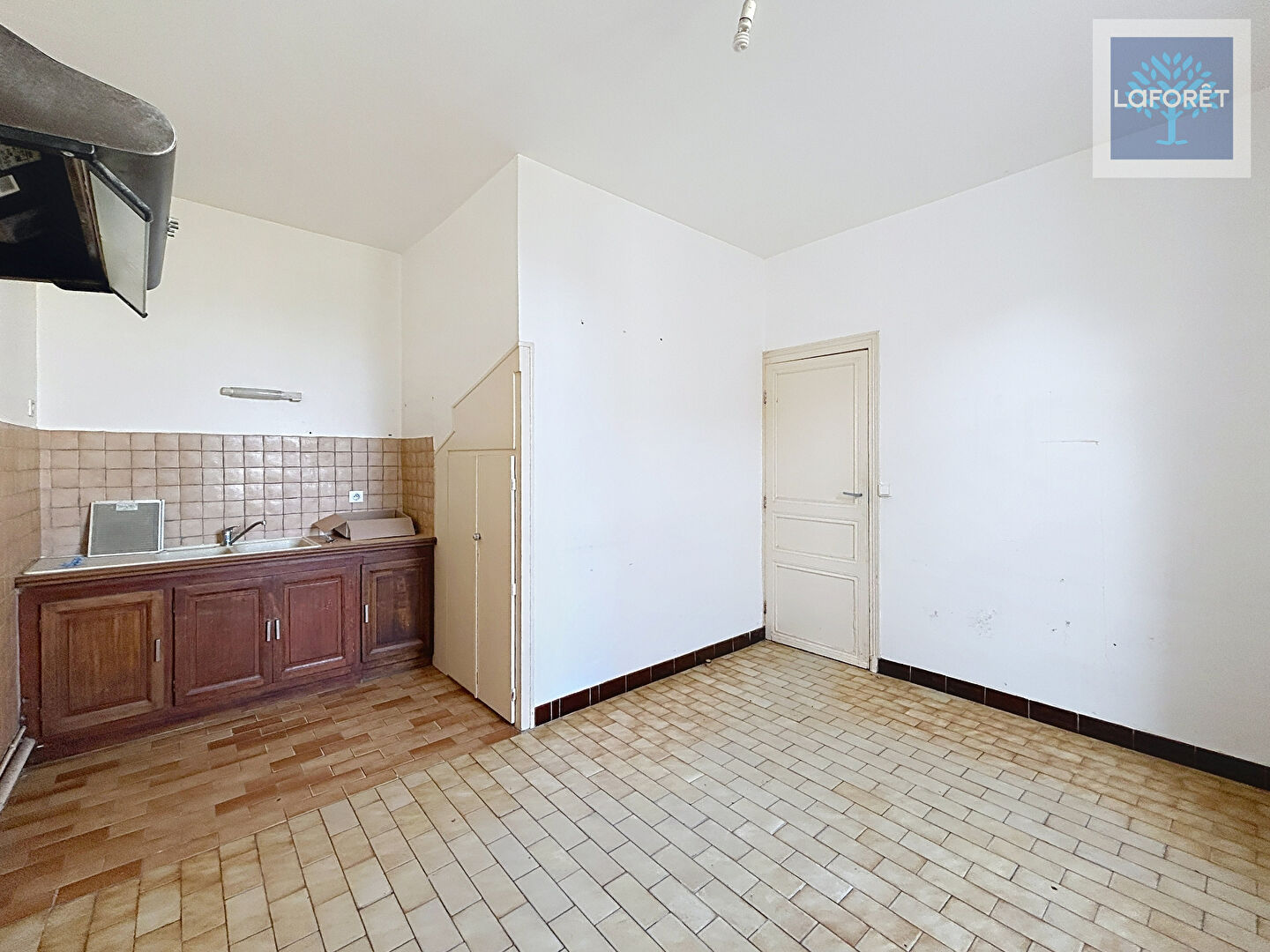 Le rez-de-chaussée s'ouvre sur un couloir, une cuisine à aménager, une salle à manger salon, une chambre et une salle d'eau avec WC.
