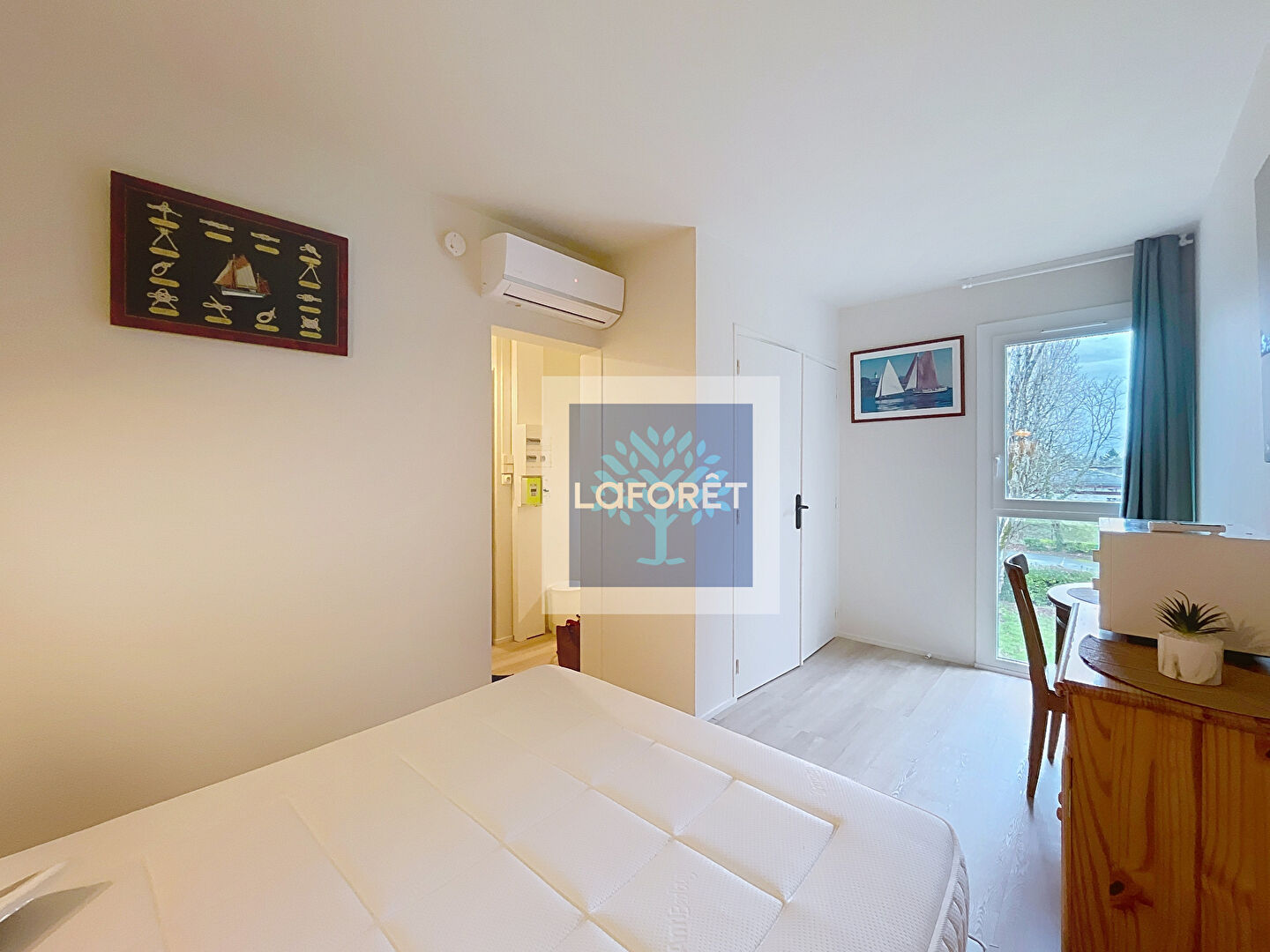 Il se compose d'une pièce de vie lumineuse avec de nombreux rangements et d'un couchage deux personnes, d'une cuisine aménagée et équipée, ainsi que d'une salle d'eau avec WC.