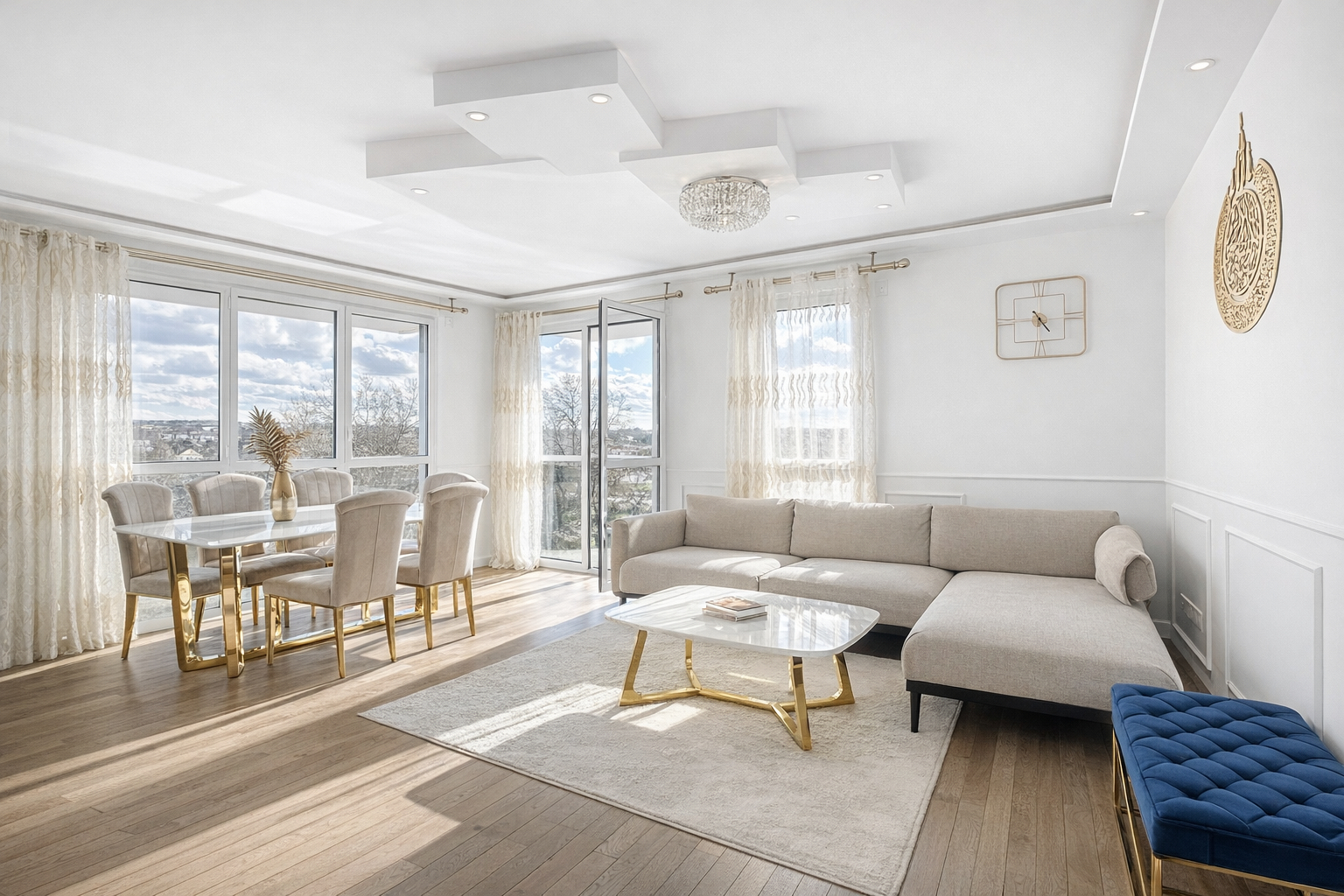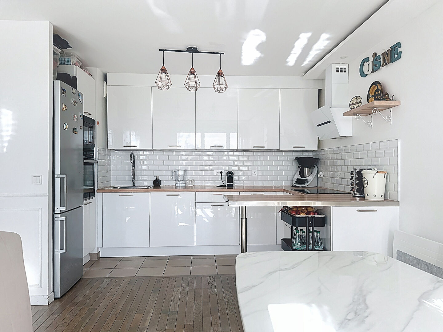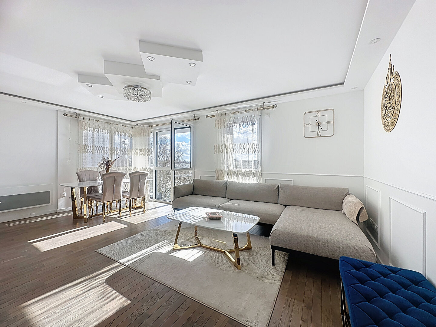 Dès l'entrée, vous serez séduit par la pièce de vie de plus de 29 m² avec cuisine ouverte, aménagée et équipée, idéale pour profiter de moments conviviaux en famille ou entre amis. La belle exposition et les grandes ouvertures apportent une luminosité très agréable, renforcée par un plafond et un éclairage LED soigneusement installés, pour une atmosphère chaleureuse et contemporaine.