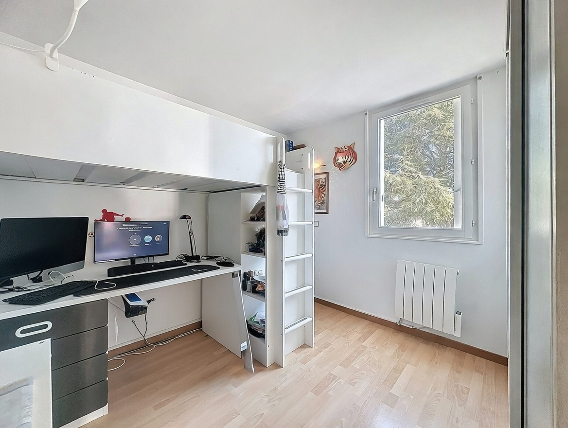Côté stationnement, vous disposez d'un garage/box en sous-sol, un atout précieux dans le secteur, ainsi que d'un environnement résidentiel agréable, idéal pour les familles actives. Les bus au pied de la résidence (environ 1 minute) et l'accès à la gare en 15 minutes rendent les déplacements quotidiens particulièrement simples.