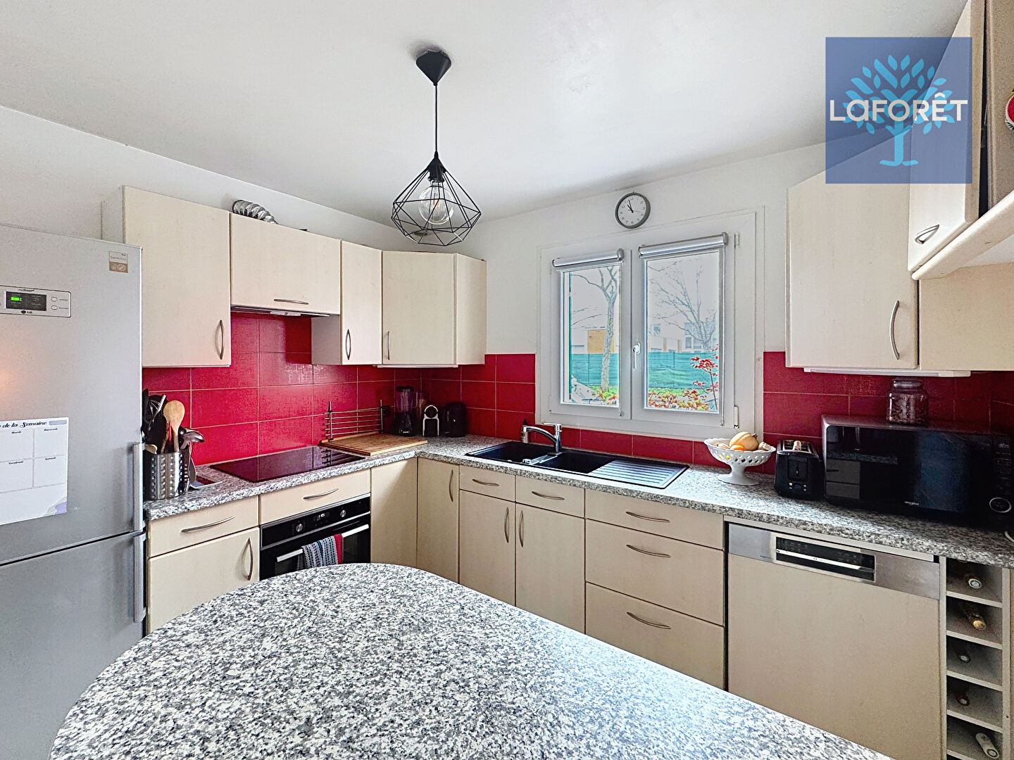 La cuisine aménagée, équipée et dînatoire est fonctionnelle.