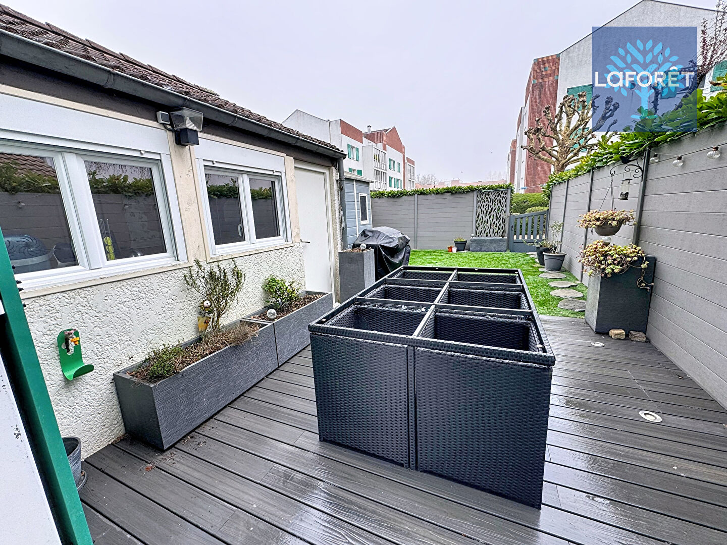 À l'extérieur, le jardin constitue un véritable espace de détente pour profiter des beaux jours, recevoir ou laisser les enfants jouer en toute tranquillité.