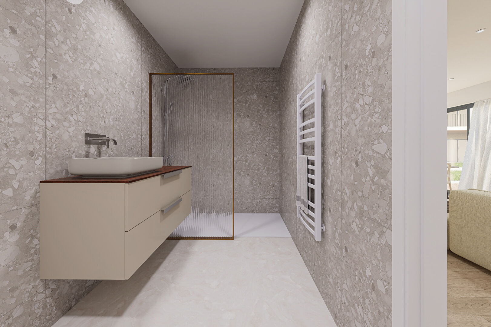 Il vous offre une entrée avec placard, un sanitaire indépendant, un spacieux salon séjour ouvert sur la cuisine , deux chambres lumineuses et une agréable salle d'eau avec douche et une terrasse de 10.18m2.