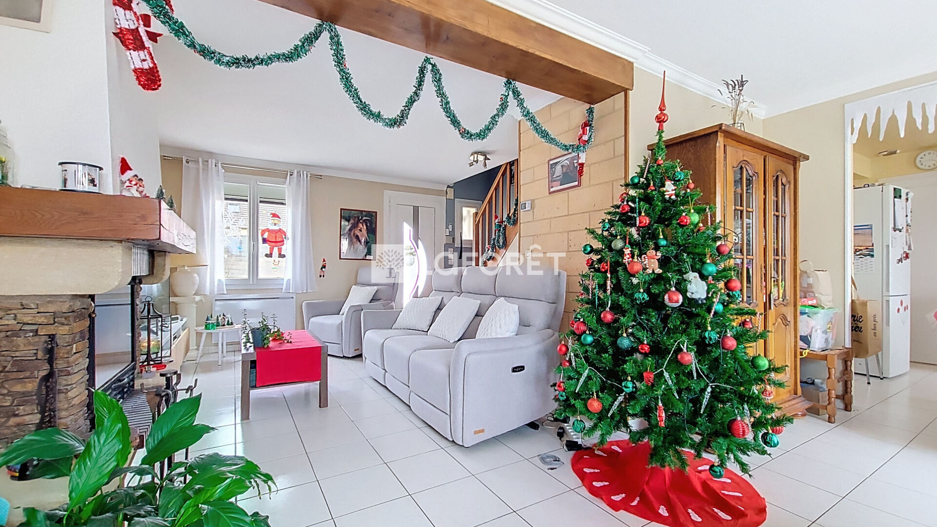 Un garage attenant, accessible directement depuis la cuisine, apporte un confort appréciable au quotidien.