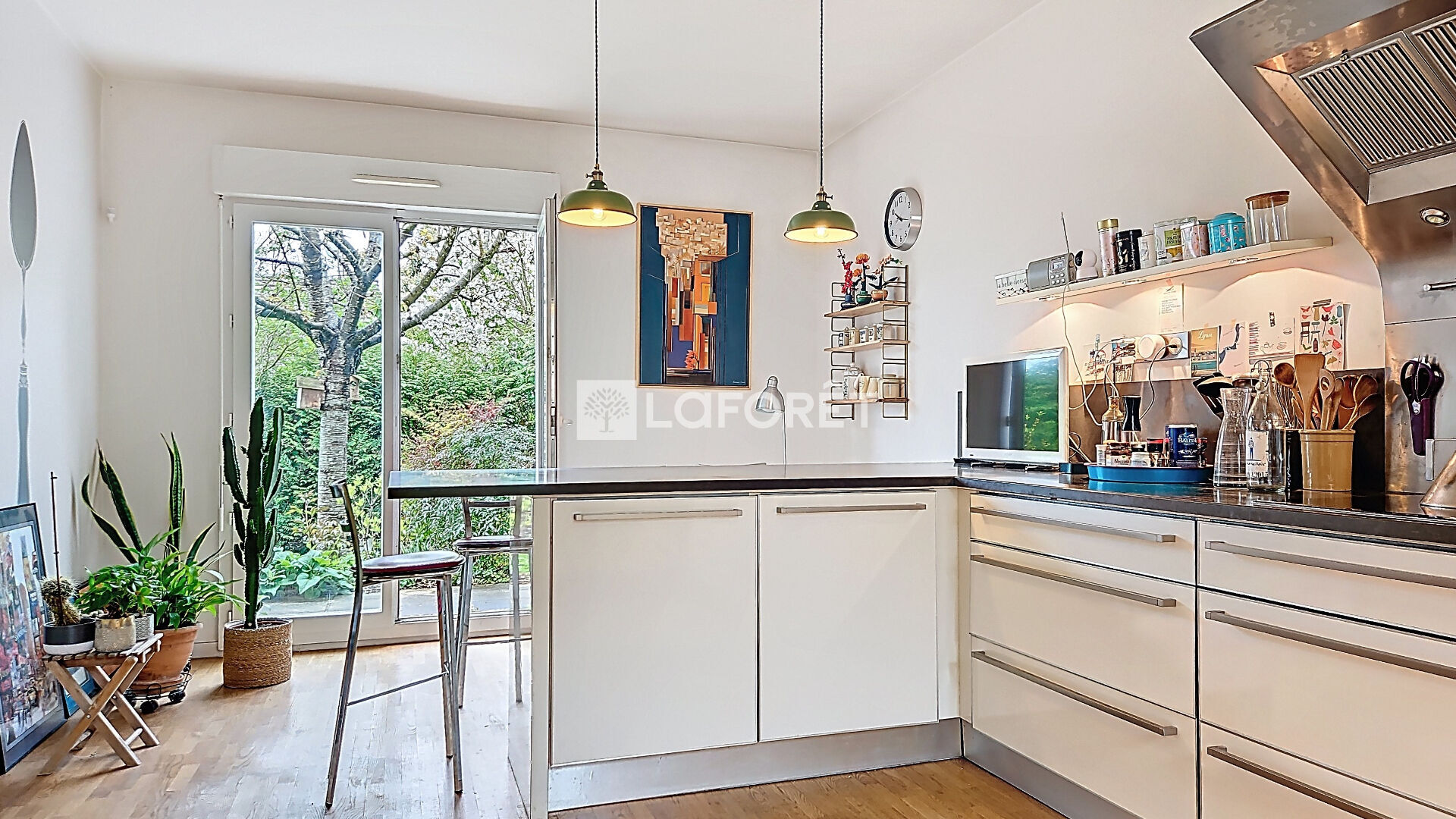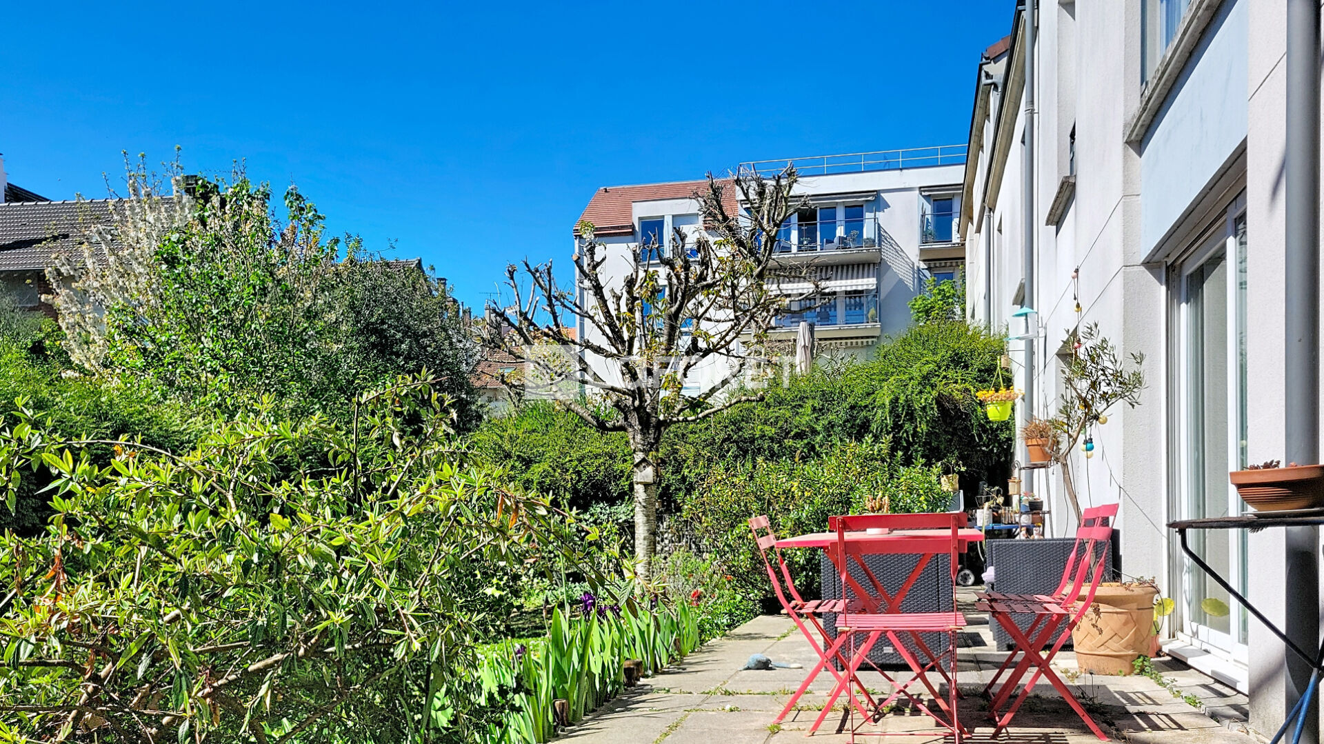 Ici, tout se fait à pied, commerces, écoles, parc, transports, puis une fois le portail passé, le rythme change. La maison se découvre au sein d'une petite copropriété, à l'écart des bâtiments, sans vis-à-vis direct, avec un jardin qui s'organise en deux espaces, au sud et à l'est, dans le prolongement de la pièce de vie.