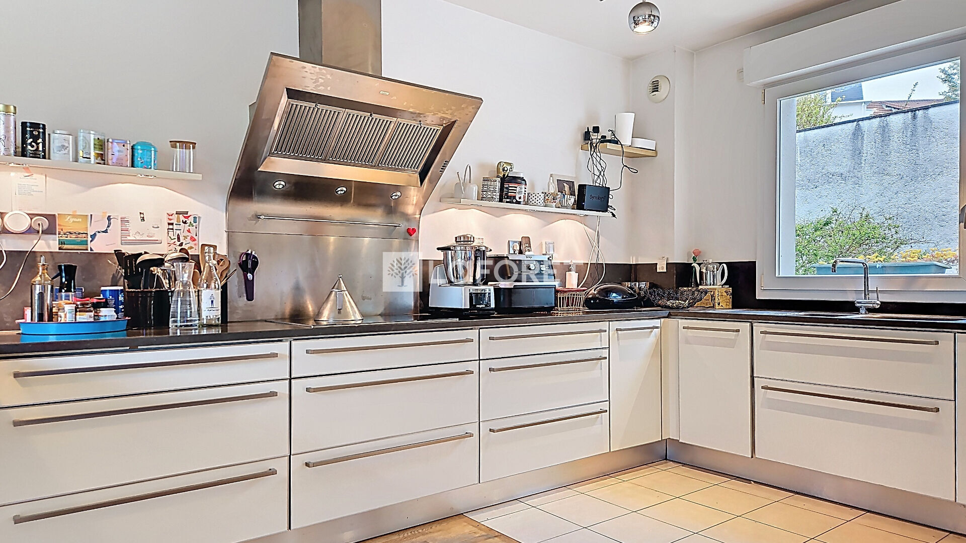 Dans le prolongement, la cuisine reprend cette logique traversante. Avec près de 23 m², elle offre un vrai espace à vivre, tout en restant connectée à la salle à manger pour garder le lien au quotidien.