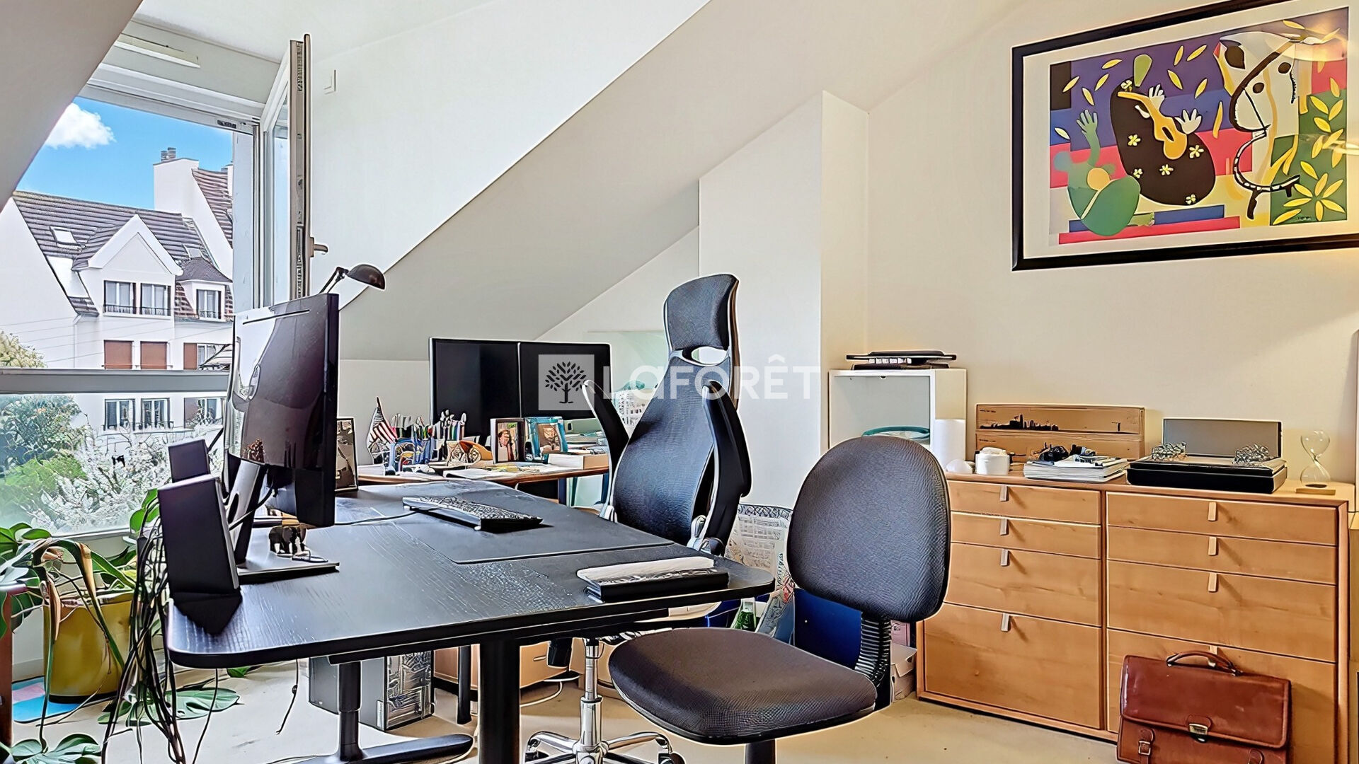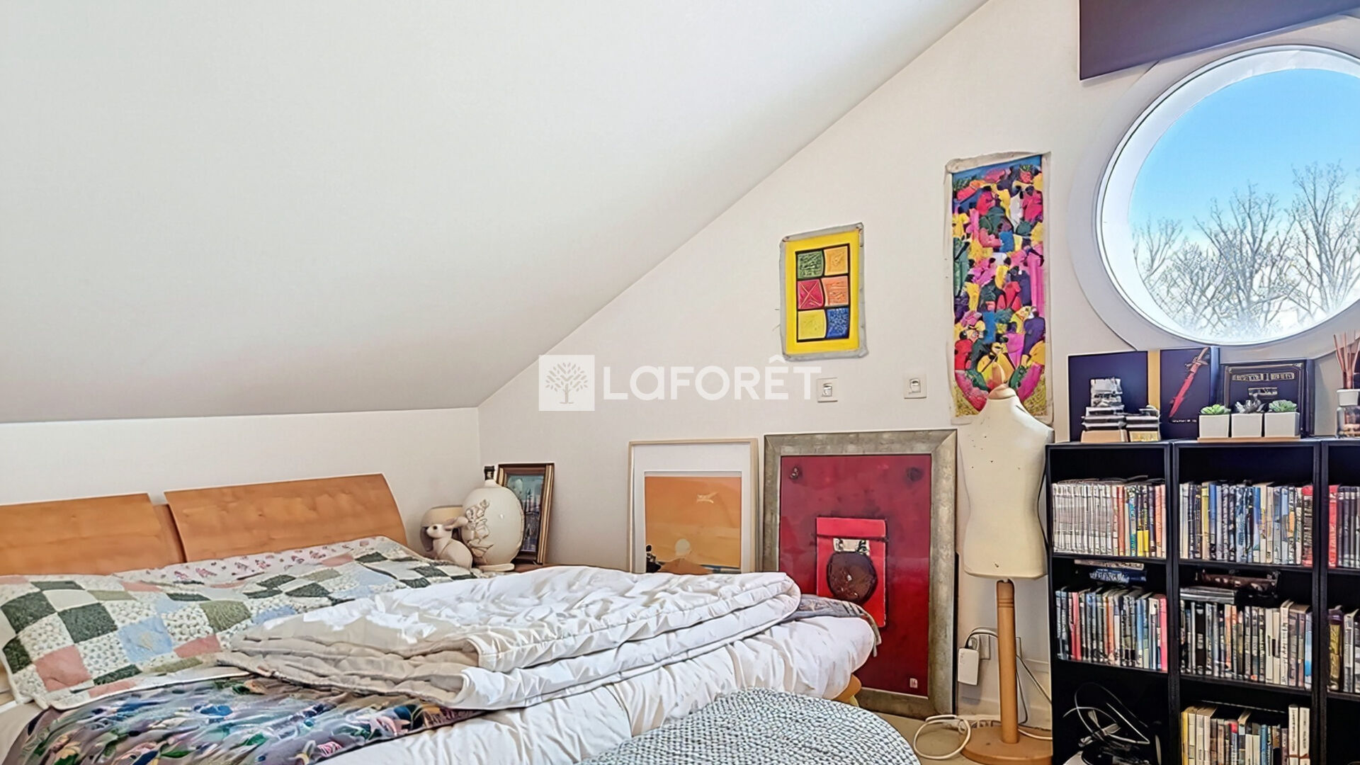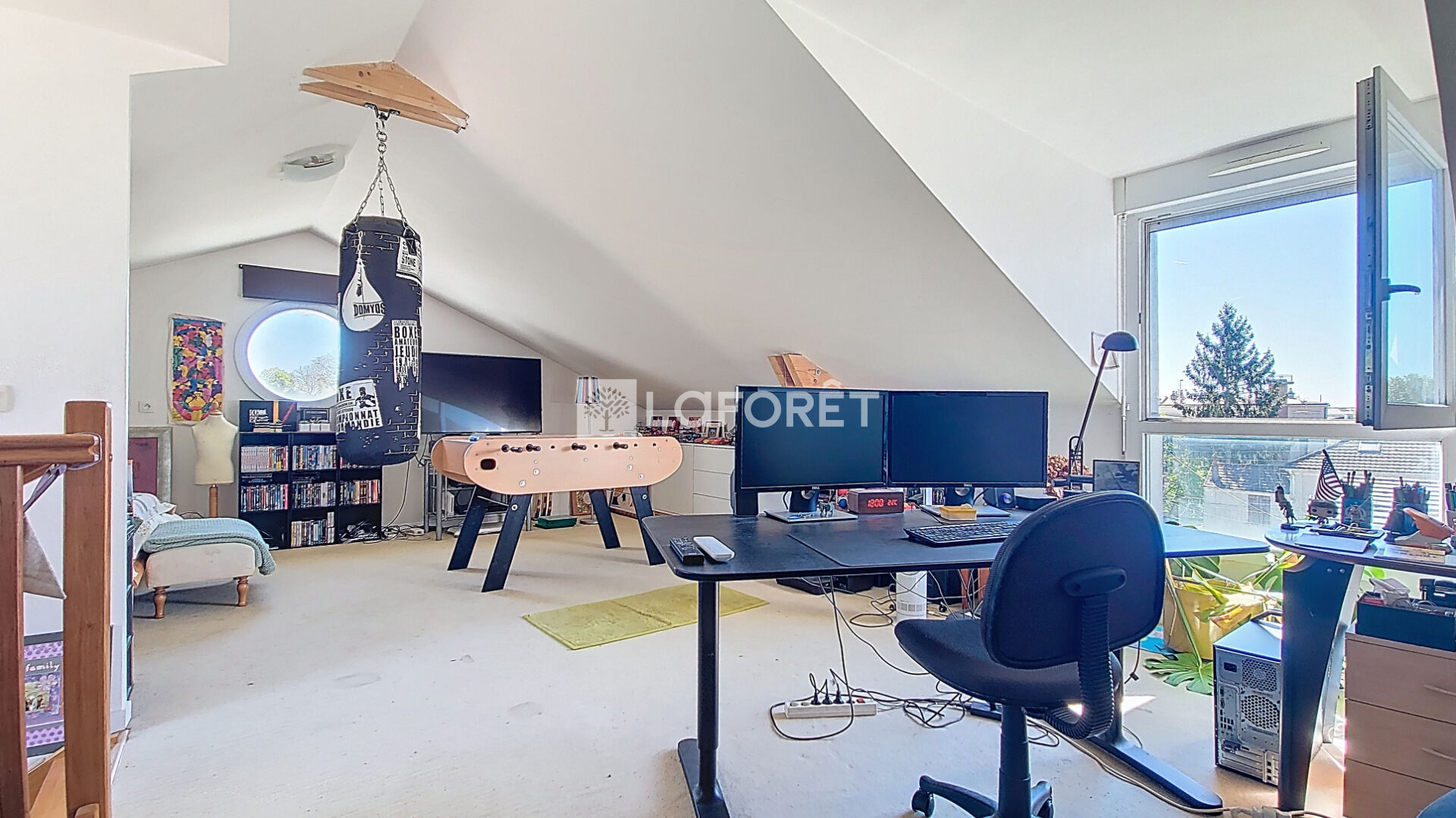 Puis, au dernier niveau, les combles proposent un volume ouvert de 22 m² habitables (44 m² au sol). Aujourd'hui utilisé en chambre avec espace jeux et bureau, cet étage permet aussi d'imaginer une cinquième chambre selon les besoins.